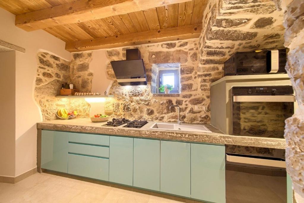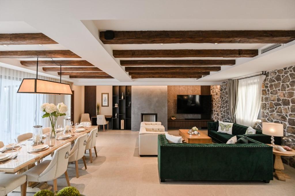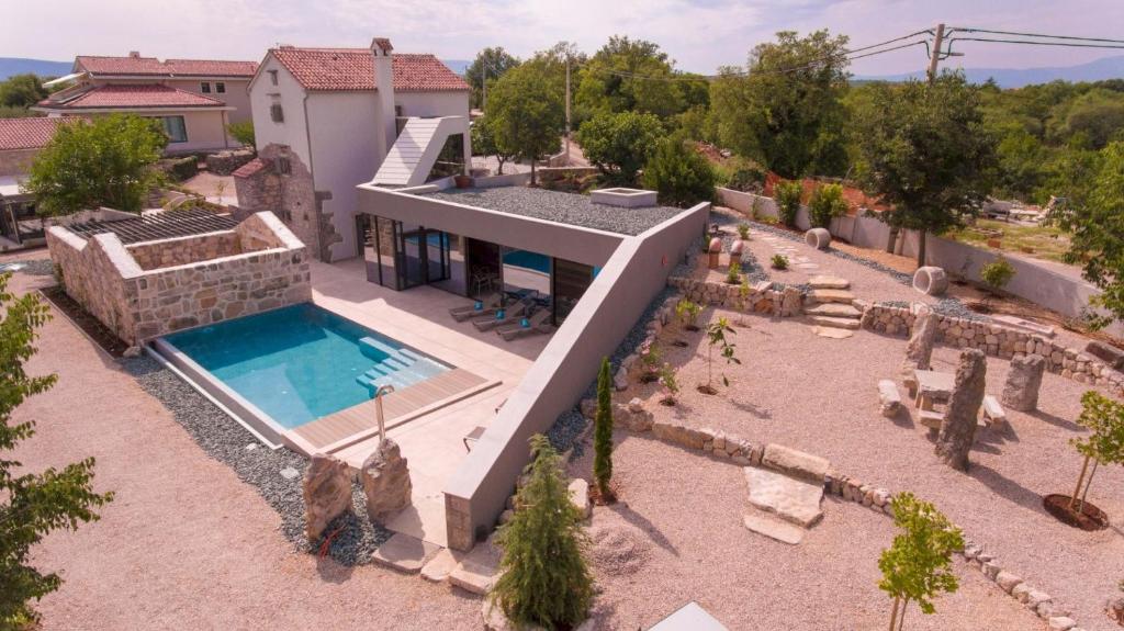 Razkošno posestvo v Bajčićih, le 6 kilometrov od mesta Krk, ponuja nastanitev za 10 oseb. Vila sestoji iz dveh ločenih enot, vsaka pa vključuje 2 spalnici z ločenima kopalnicama, kuhinjo, jedilnico in dnevno sobo, zaradi česar je idealna za družinske počitnice. Sproščate se lahko v masažni kopeli, savni in v zunanjem bazenu. Dan lahko zaključite v vinoteki in se prepustite čarom otoka. Vse je obdano z zelenjem, zato je ta hiša vsekakor odlična izbira za tiste, ki iščete mir in tišino, v sožitju z naravo. Več posestvu lahko preberete tukaj.