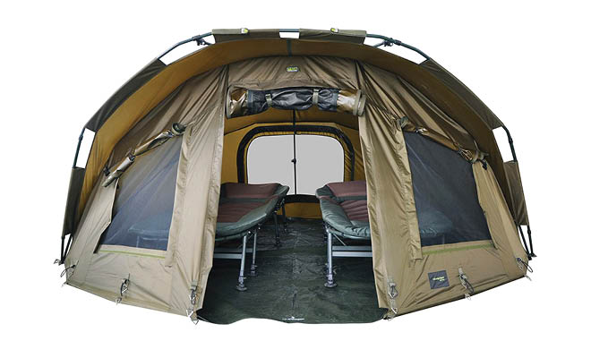 Pravi moški so ribiči! In tale šotor si zlahka predstavljamo ob kakšnem jezeru. In prav temu je namenjen. Hitremu postavljanju taborja, ki lahko gosti dva moška, željna lova. V notranjosti je v višino prostora 1,5 metra in v njega zlahka postavimo “poljski” postelji. Poleg glavnega vhoda je na hrbtni strani veliko okno, ki omogoča izdatno zračenje. Pri tem pa je možno prednjo stran šotora popolnoma odpreti in omogočiti nemoten pogled v naravo. Kakopak je ogrodje kleno, izjemno kleno. Zato bo ta šotor zmožen preživeti najhujše poletne nevihte. To mu omogoča tudi vodni stolp, ki je na določenih delih 10.000 mm.