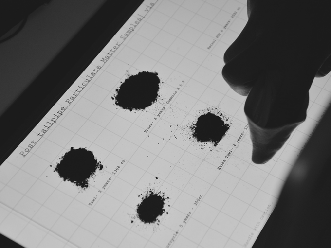 Zakaj bi avtomobilski izpuhi končali v naših pljučih, ko pa lahko iz njih izdelamo črnilo? Graviky Labs je izdelal posebno napravo, ki se jo namesti na izpušni sistem, da lovi onesnaževala. Strupene delce nato očistijo in spremenijo v črnilo, ki konča v pisalih in kartušah. Samo 45 minut vožnje je dovolj za 1 mililiter tekočega črnila.