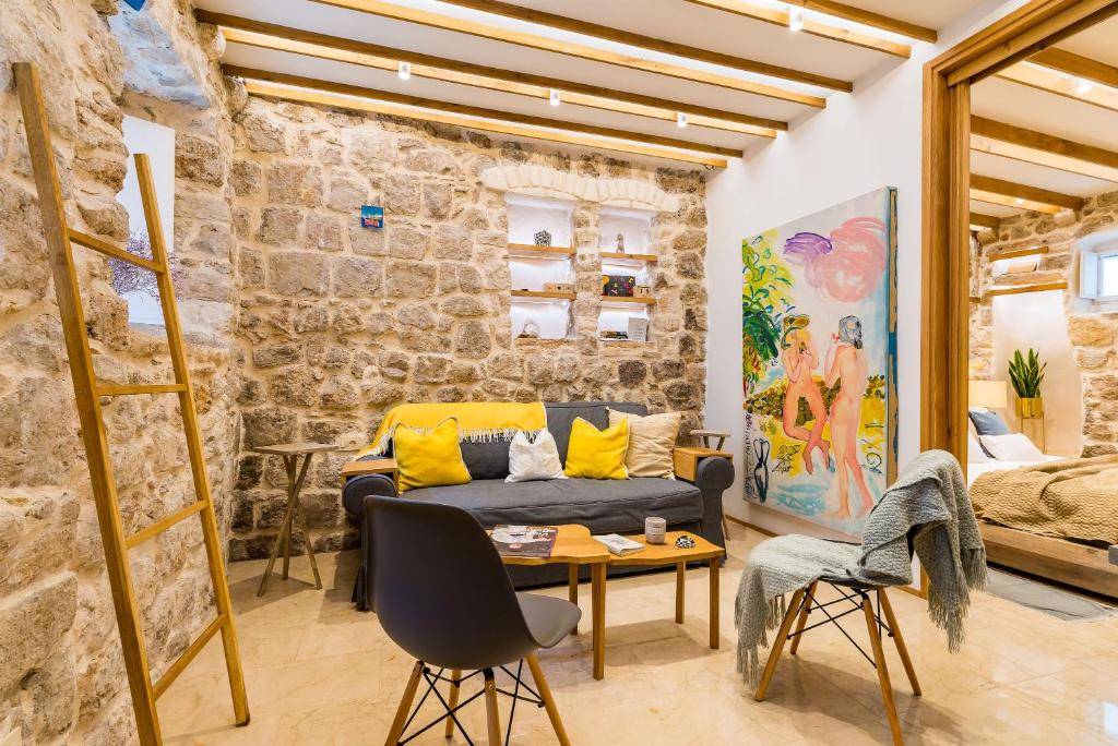 Da ne gre za še enega izmed običajnih apartmajev, obiskovalcu hitro postane jasno. Do glavnega trga sta zgolj dve minuti hoje, kljub temu pa je namestitev dovolj odmaknjena od vrveža, da lahko v miru uživate v počitnicah. Hišica, ki je preživela uničevalni potres davnega leta 1667 danes gosti goste z vsega sveta, njena zgodovina pa se zrcali tudi v okusni notranji opremi. Stare kamnite stene in sodobno pohištvo sta čudovita kombinacija za okrasitev prijetnega in toplega bivališča.