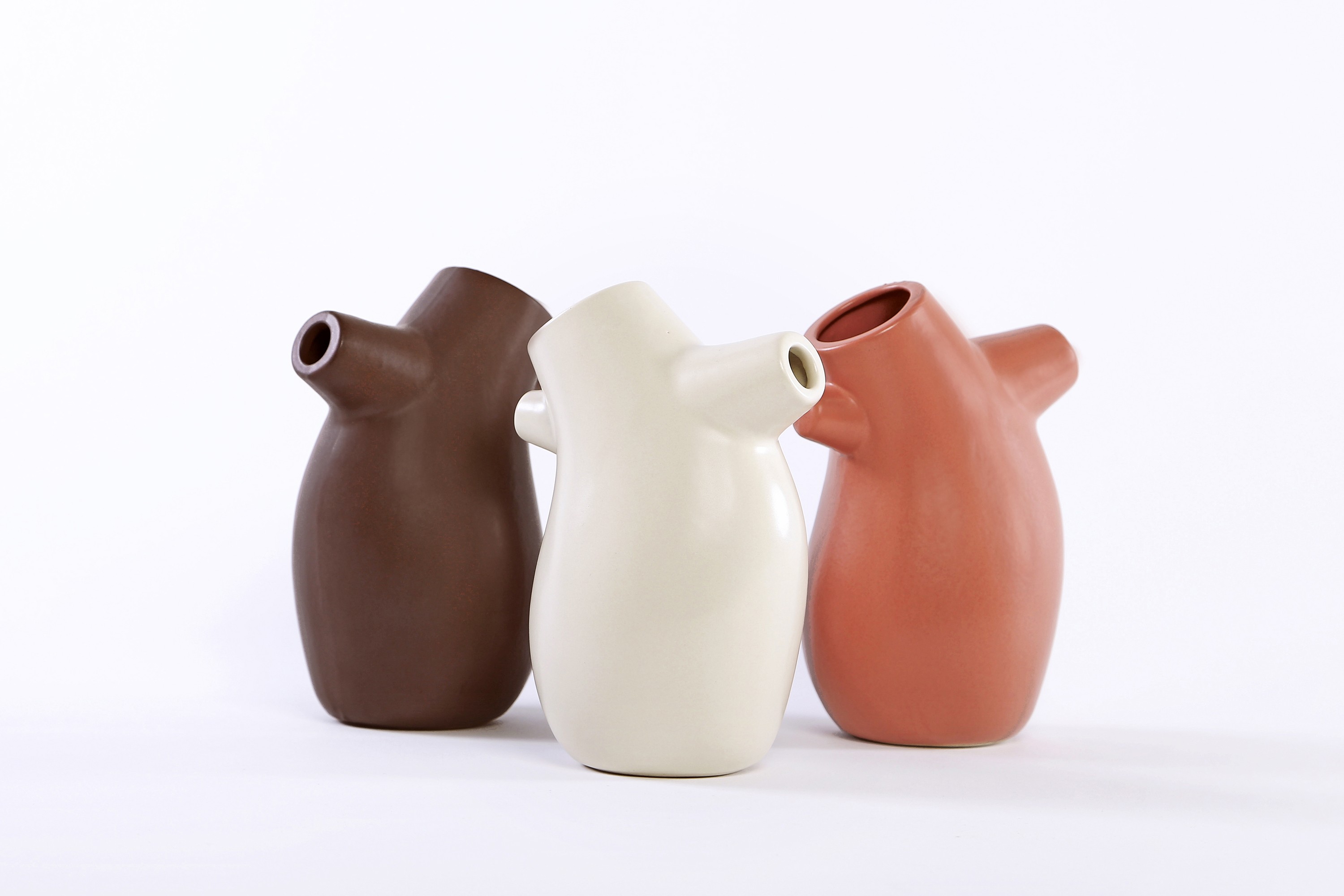 مجموعة 100 إبريق باللون الأبيض اللامع والشوكولاتة و اللون المرجاني تم تقديمه لأول مرة في الإطار في بداية أبريل منطقة معرض ماكو للفنون.