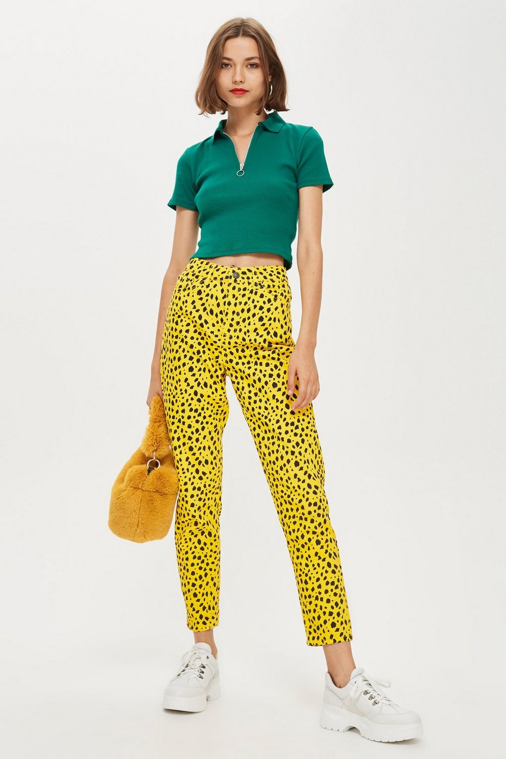 سنكون قادرين على رؤية الطباعة الحيوانية في كل قصة أزياء تقريبًا هذا الخريف. من الفساتين إلى المعاطف ومن الواضح أن الجينز أيضًا. ولن تبدو رخيصة. إنه جينز رائع ومتطور ومرغوب فيه بنسبة 100% وسيضفي الحيوية على أي خزانة ملابس. ابدأ مع بنطال جينز كلاسيكي بطبعة جلد الفهد وبلوزة سوداء متماسكة وحذاء أسود لإطلالة بسيطة ورائعة.