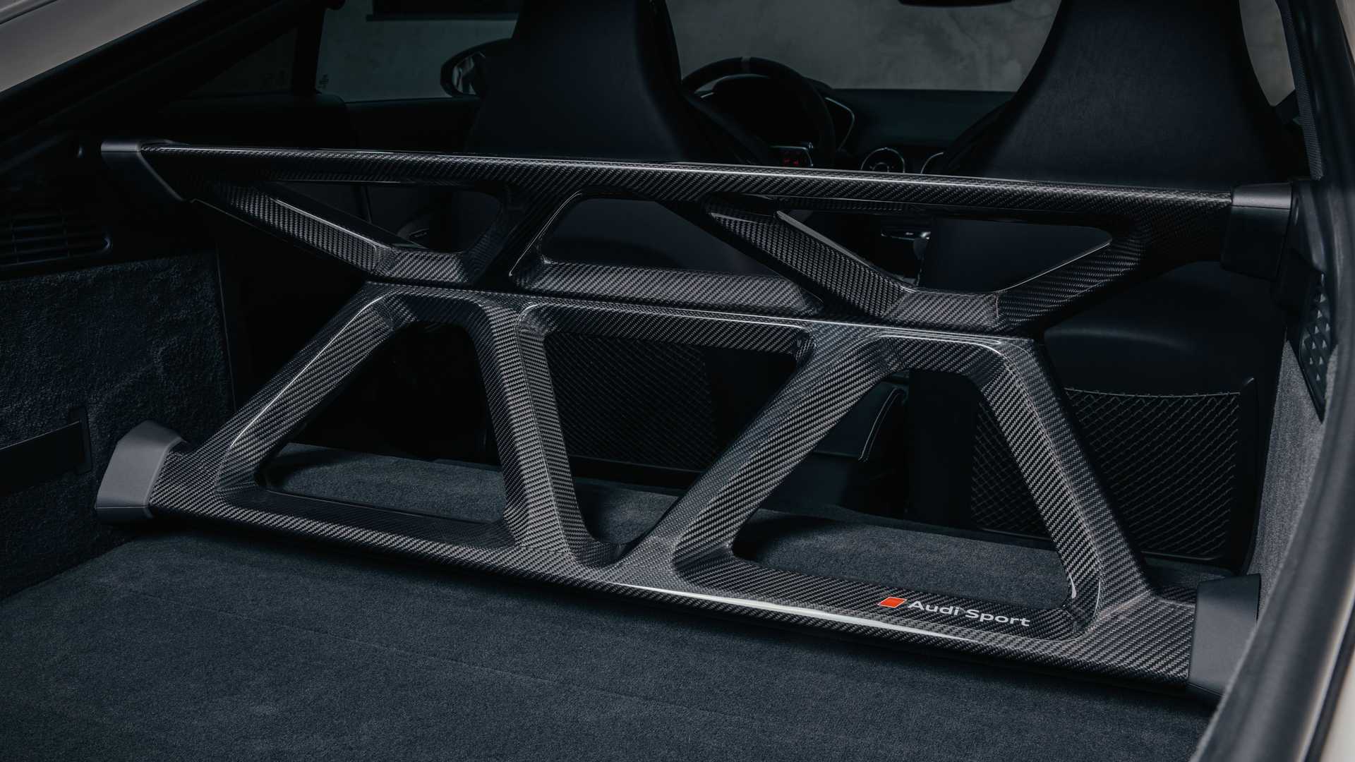 يمكنك أيضًا الحصول على إصدار محدود كمقعدينمن خلال شراء دعامة اختيارية من ألياف الكربون تحل محل المقعد الخلفي. فهو لا يعمل على تحسين الصلابة الالتوائية فحسب، بل إن السيارة أخف وزنًا بمقدار 16 كيلوجرامًا أيضًا مقارنة بالطراز العادي ومقاعده الخلفية (الضيقة). دليل آخر على أن هذه ليست سيارة عادية هو الشارة المرقمة بشكل فردي على ذراع ناقل الحركة علبة التروس S ترونيك ذات سبع سرعات.