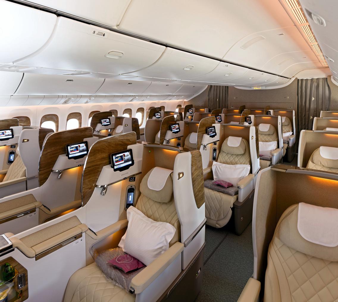 يمكنك استئجار شقتي، الذي يتفوق على الفنادق الفاخرة في نواحٍ عديدة. استلهمت شركة طيران الإمارات من مرسيدس بنز الفئة S وداخليتها. في كابينة يمكنك إغلاقها بـ من الأرض إلى السقف أبواب منزلقة، يتم تركيبها انعدام الجاذبية مقاعدسيتم توفير المحتوى الترفيهي بواسطة شاشة تلفزيون عالية الدقة مقاس 32 بوصة، من أجل الرفاهية والأضواء ودرجة الحرارةوالتي سوف تكون قادرا على جهاز التحكم عن بعدإذا لم تكن محظوظًا بما يكفي للجلوس بجانب النافذة، نافذة مثبتة في المقصورة توفر رؤية افتراضية للخارج، إنها طائرة مجهزة بـ في الوقت الحالى الكاميرات.