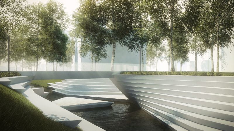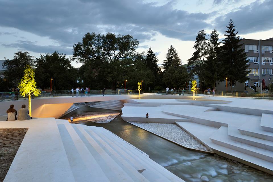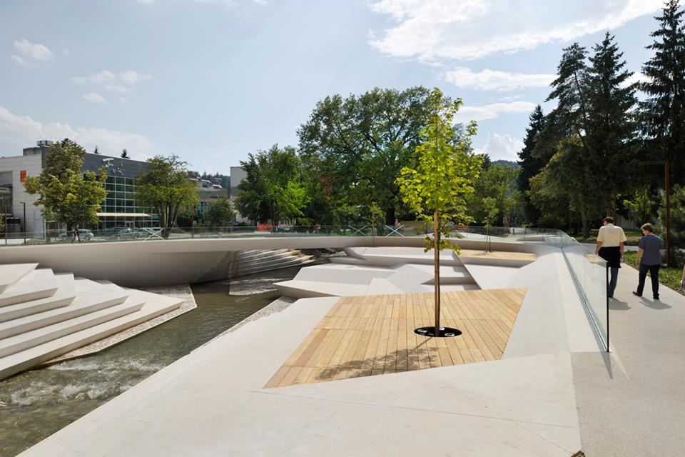 في فيلينجي، أصغر مدينة سلوفينية، تم الانتهاء مؤخرًا من تجديد متنزه المدينة. لقد جلب المسار المتعرج والجسر الحديث الجديد ومنزل المرآب المثير للاهتمام والسلالم البيضاء التي تنزل إلى النهر النضارة ومكانًا جديدًا للتواصل الاجتماعي في المدينة.