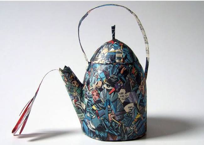 خدمة الشاي التي تقدمها سيسيليا ليفي ليست عادية. إنها حساسة للغاية ورقيقة كالورق. لا، ليست مصنوعة من الخزف الصيني. إنه مصنوع من الورق، أو بالأحرى، من ورق الكتب القديمة والقصص المصورة، والتي كان من الممكن أن ينتهي بها الأمر في مكب النفايات بسبب البلى. وهكذا، في شكل أكواب وأطباق وأشياء أخرى، فإنهم يختبرون ربيعهم الثاني. مبهر.