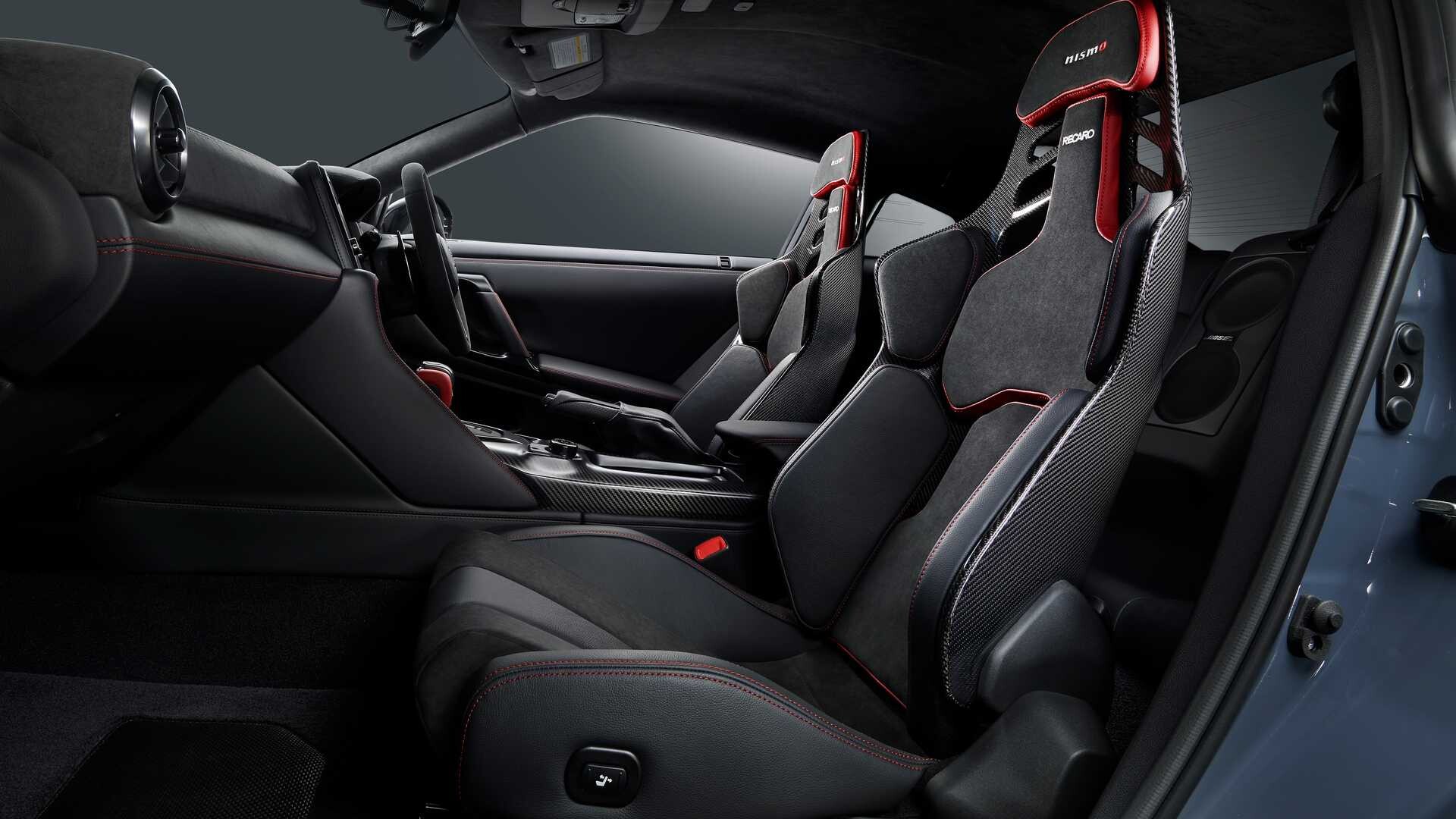 وبالحديث عن Nismo ، فهي واحدة من نسختين خاصتين جديدتين تمت إضافتهما إلى تشكيلة GT-R لعام 2024. نحن لسنا طبعة خاصة هي أقوى سيارة GT-R على الإطلاق ، مع تعديلات ديناميكية هوائية إضافية ، وإعدادات خاصة لأداء التعليق ، وترس تفاضلي ميكانيكي محدود الانزلاق على المحور الأمامي. كما تتميز نيسمو بغطاء محرك من الكربون ومقاعد ريكارو جديدة باللون الأسود الكربوني وأجزاء محرك متوازنة الوزن لمزيد من التحسينات.