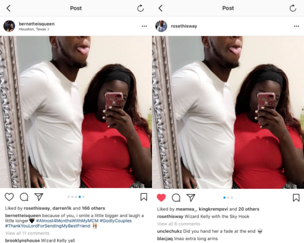 عندما نشرت إيزابيلا الصورتين جنبًا إلى جنب على تويتر، بدأ الأمر انهيار من صور الأزواج الآخرين، الذي نشر أيضًا كلا السجلين وأثبت مرة أخرى أننا، النساء والرجال، ننتمي إلى كوكبنا الخاص. بينما تكتب النساء (كما هو متوقع) تعليقات جميلة وصادقة، يحاول الرجال مع النكات الغبية.