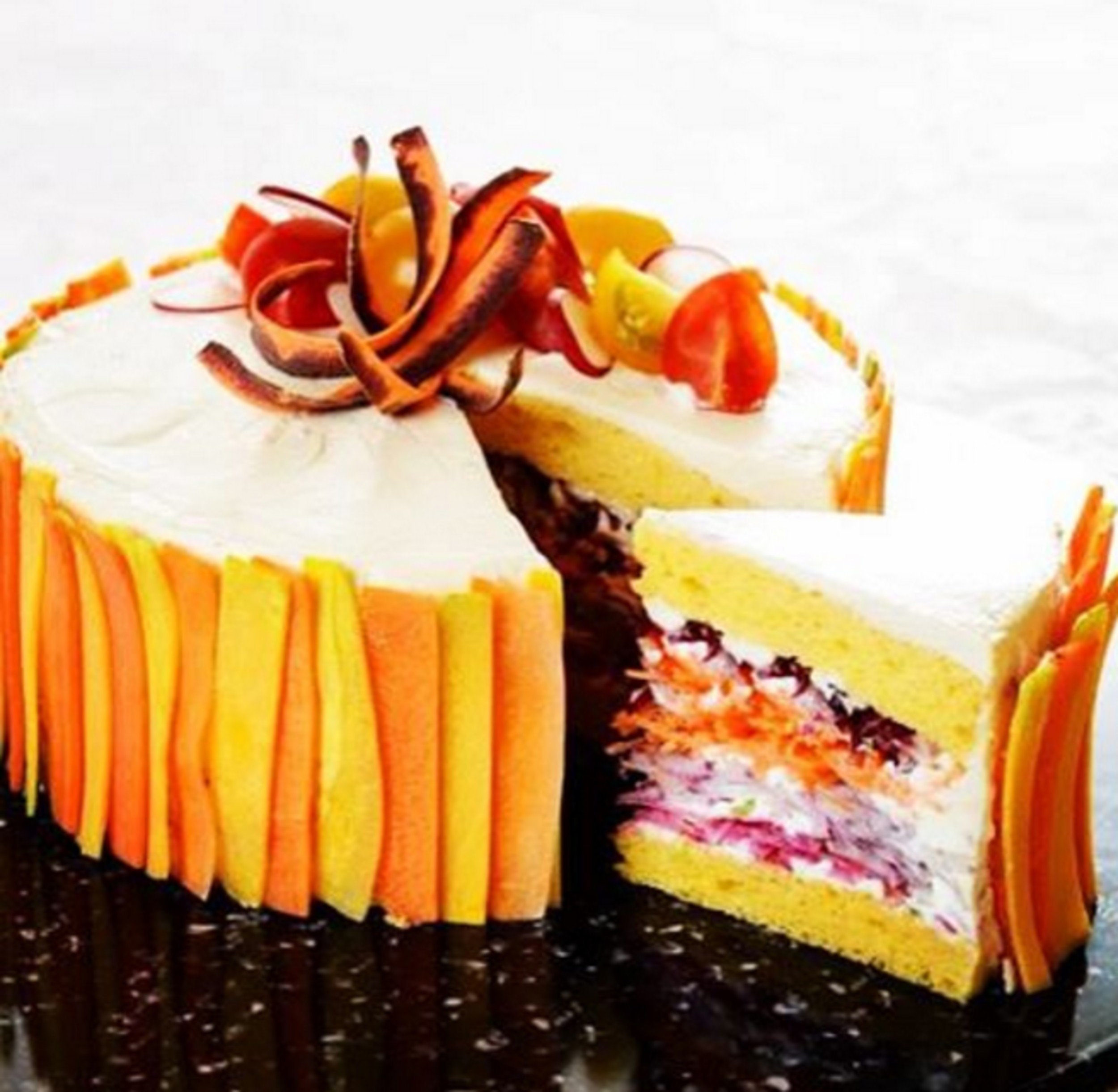 لذيذ كعكات هي في الواقع سلطاتموقعة من قبل يابانيين مصمم الطعام ميتسوكي مورياسو، الذي صمم مفهوم الطعام الجديد في عام 2015، والآن هؤلاء حلويات نباتية موجودة بالفعل في قائمة المطعم بيسترو لا بورت مارسيليا في مدينة ناغويا اليابانية. تُعتبر هذه المنتجات نقيضًا تامًا للكعك التقليدي (باستثناء الشكل الجمالي)، إذ يُركز على الصحة (فالكعك التقليدي غير صحي). والمكونات الرئيسية، بدلًا من الدقيق، هي كميات وفيرة من البيض والقشدة، وغيرها. طعام خارق خالٍ من الغلوتين، يحتوي على منخفض الكربوهيدراتوتشمل جميع أنواع الخضراوات (بما في ذلك الفواكه)، من بين أمور أخرى: الجذور والقشورمما يزيد من الفوائد الصحية للكعكة.