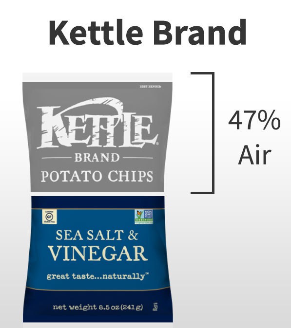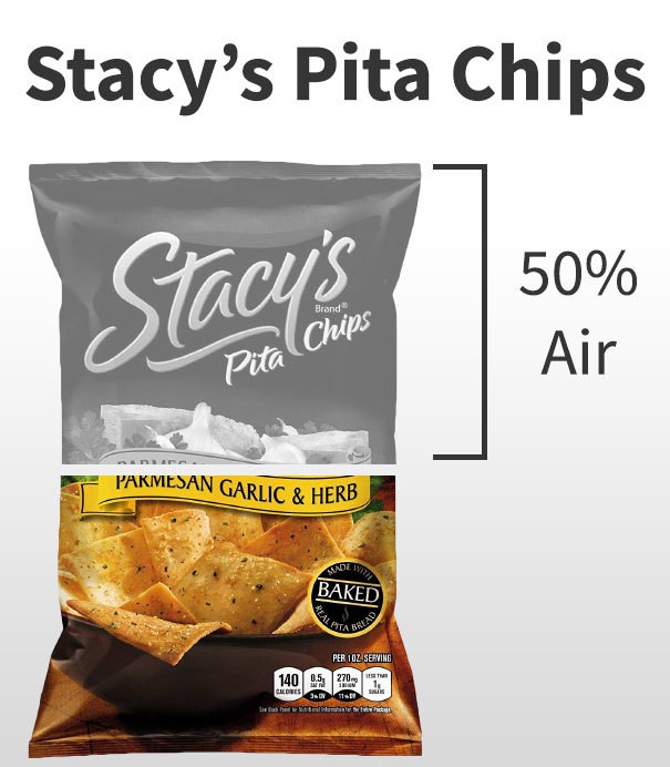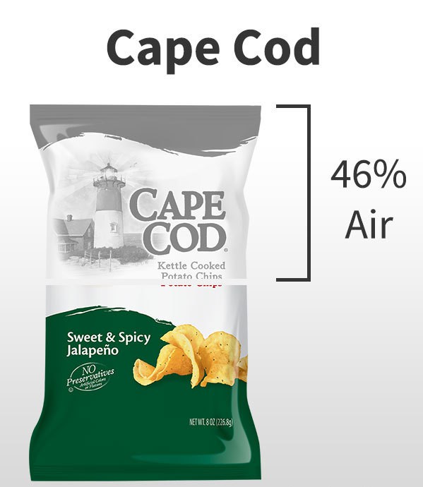 قمت بفتح كيس من رقائق البطاطس. أنت تنتظر بفارغ الصبر البطاطس المقلية المقرمشة في فمك. عندما تصل إلى عمق الكيس، يتحول الترقب الجميل إلى استياء عندما تدرك أنك حصلت على هواء أكثر من البطاطس. ما هي الرقائق التي تحتوي على معظمها؟