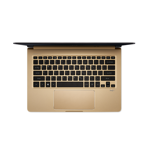 Acer Swift 7 varuje ohišje iz enega kosa aluminija, ki je zunaj črn, znotraj pa zlat. Inženirji so prenosniku namenili 8 GB notranjega spomina in 256 GB SSD-prostora za shranjevanje, za hlajenje pa zadolžili procesor بحيرة كابي, ki ne uporablja ventilatorjev (vodno hlajenje). Kljub plitki tipkovnici je uporabniška izkušnja odlična. Ponaša se z لوحة التتبع, veliko kot nogometno igrišče, in tehnologijo Tobii, ki sledi pogledu in omogoča upravljanje prenosnika z očmi.