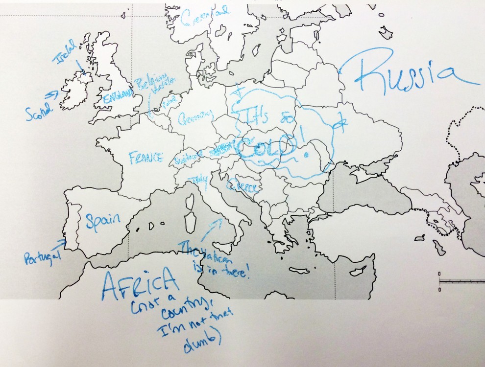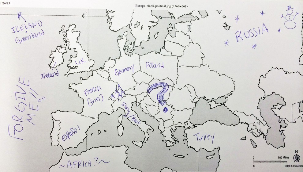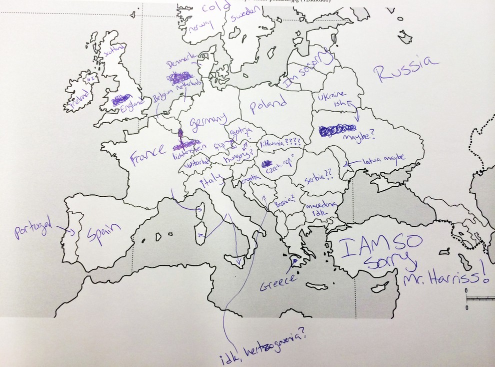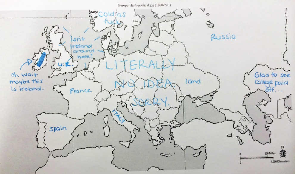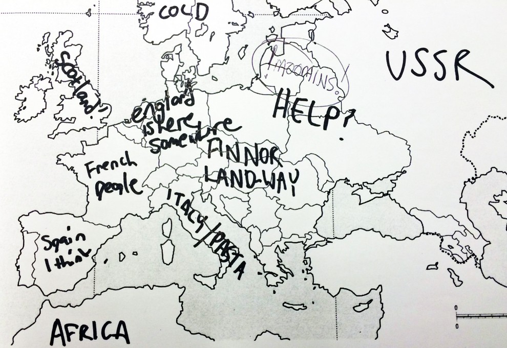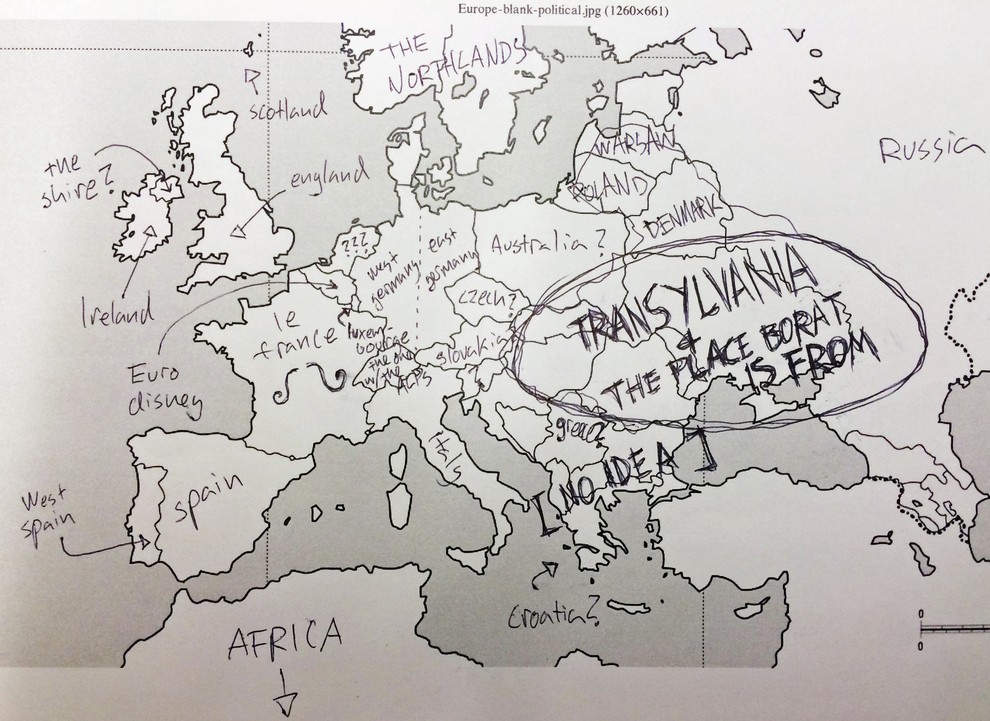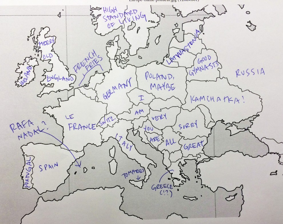 Kako prepričani ste v svoje znanje geografije? Portal Buzzfeed je nedavno postavil Američane na preprost preizkus znanja. Udeleženi v raziskavi so bili naprošeni, naj na خريطة أوروبا كتابة اسماء الدول الأوروبية. وبعبارة ملطفة، لم يفعلوا جيدا. لكن إجاباتهم أكثر متعة بكثير. لكن لا ينبغي الحكم على الأمريكيين بقسوة شديدة، لأنه من ناحية أخرى، تبين أن المعرفة البريطانية بالولايات الأمريكية الخمسين كانت سيئة للغاية.