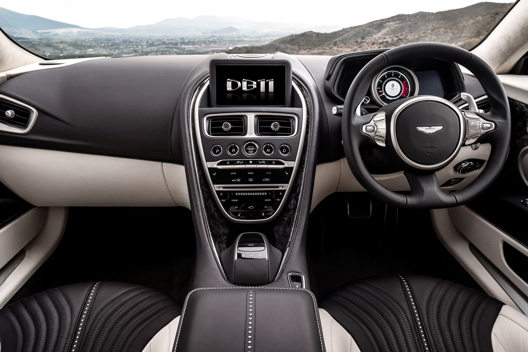 Notranjost je kljub ohranjanju الرجعية sloga, ki ga zastopa dvobarvno usnje, digitalizirana (12-palčni infotainment zaslon). Veliko komponent je pristavil oddelek مرسيدس-AMG. Aston Martin DB11 je sicer sploh prvi otrok Aston Martina in oddelka AMG, in po videnem sodeč, lahko samo upamo, da bosta imela čim bolj številčno družino.