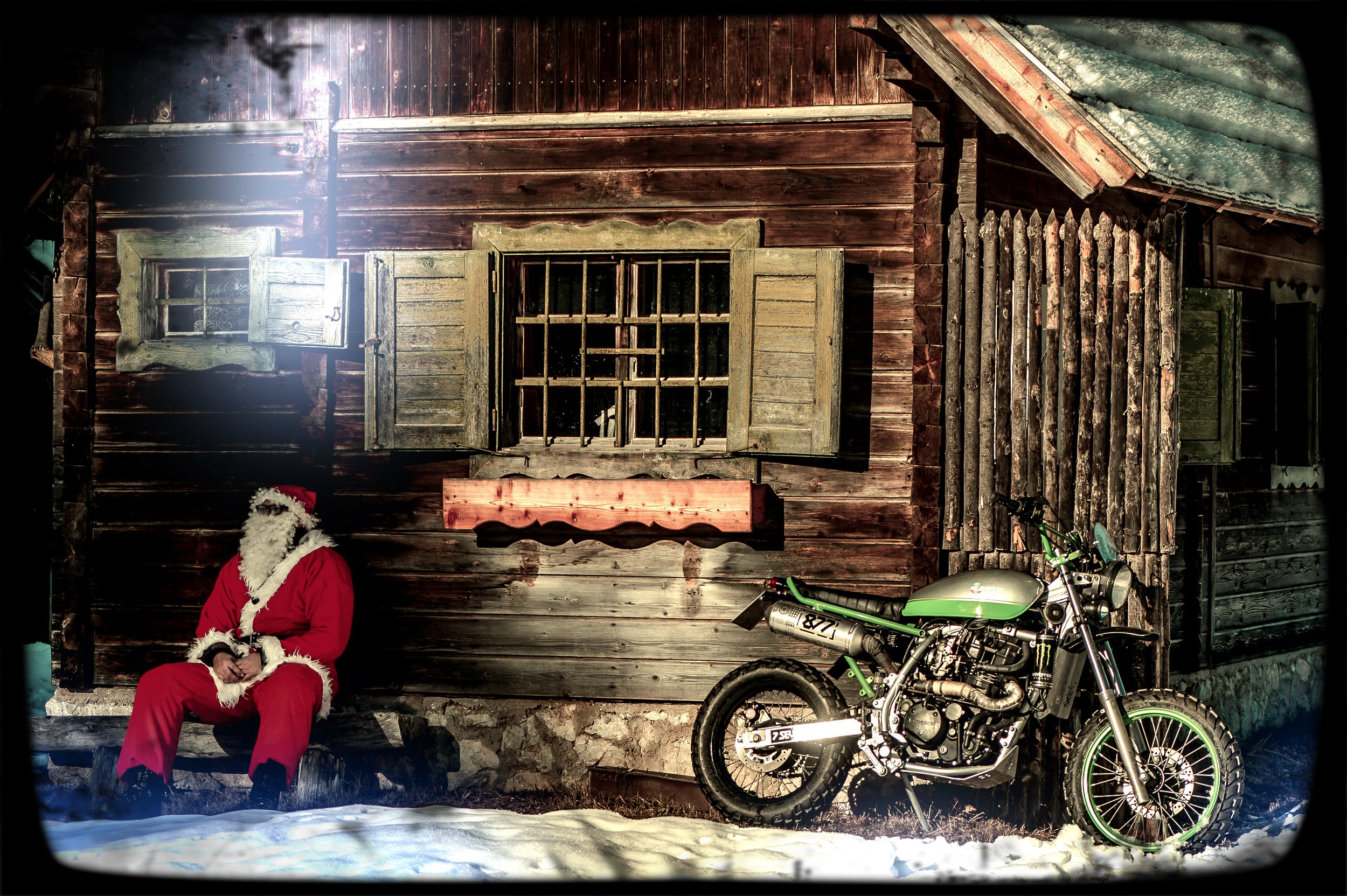 أمسكنا بسانتا في وسط الغابة على متن دراجة كاواساكي السلوفينية المعدلة، وهو يسترخي أثناء الركوب في وسط بوكليوكا. من الواضح أنه حتى سانتا كلوز يدرك أنه يواجه تحديًا كبيرًا، عندما يتعين عليه أن يتجول ويقدم الهدايا لجميع أطفال العالم في ليلة واحدة، فمن الجيد أن يريح رأسه قليلاً ويعيد شحن بطارياته.