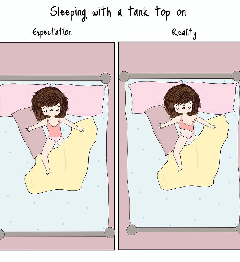 أفضل جزء من يوم المرأة هو عندما تعود إلى المنزل وتخلع حمالة صدرها الضيقة وقميصها وسروالها الضيق وتستلقي على السرير. هل يبدو هذا المشهد مألوفا؟ لقد التقطت الرسامة أكشارا أشوك العديد من المواقف المشابهة في قصصها المصورة والتي ستتعرف عليها بالتأكيد.
