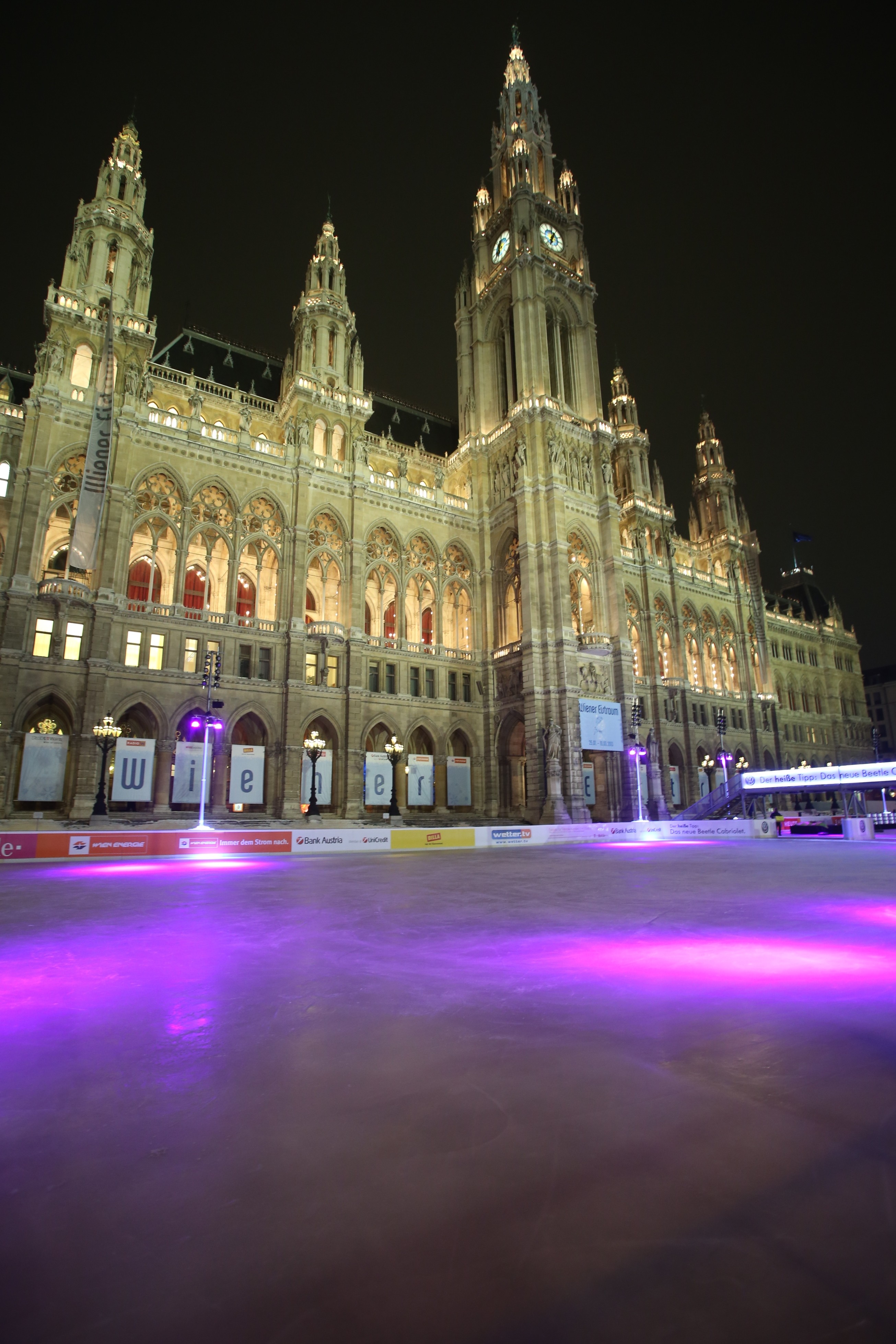 Kuliso gigantskemu, več kot sedem tisoč kvadratnih metrov velikemu drsališču nudi znamenita dunajska mestna hiša, drsalci pa podrsavajo na hite osemdesetih in devetdesetih, pa tudi kakšen valček se najde vmes. Ledena plošča je dolga kar 750 metrov, lani pa je eno največjih mobilnih drsališč na svetu gostilo kar 590 tisoč drsalcev. Drsamo lahko od devetih dopoldan do desetih zvečer, del površine pa se vsak dan ob petih popoldan spremeni v progo za curling. Morda so večerne ure še malce bolj posebne, ko ledeno ploskev romantično osvetlijo.