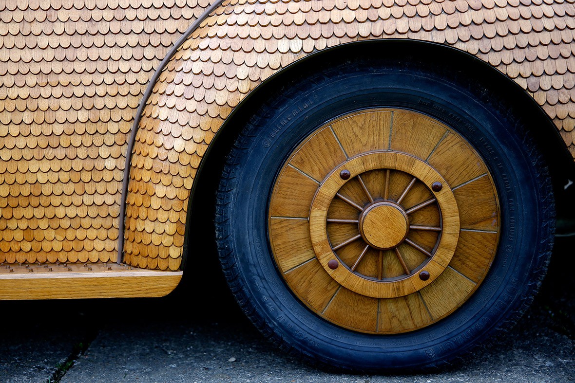 71 letni upokojeni Mojmir Bojić iz Bosne je svojega hrošča znamke volkswagen preoblekel v zanimivo leseno mobilno skulpturo. Zunanjost hrošča je ročno oblekel v 50.000 ploščic iz hrastovega lesa. Skoraj vsako podrobnost popolnega delujočega avtomobila, od brisalcev, stranskih ogledal do pnevmatik, je oblekel v rjave, ročno narejene hrastove ploščice in zato oporabil 23 različnih ločenih postopkov. Navdušen oboževalec svojega hrošča je za delo porabil več kot dve leti.