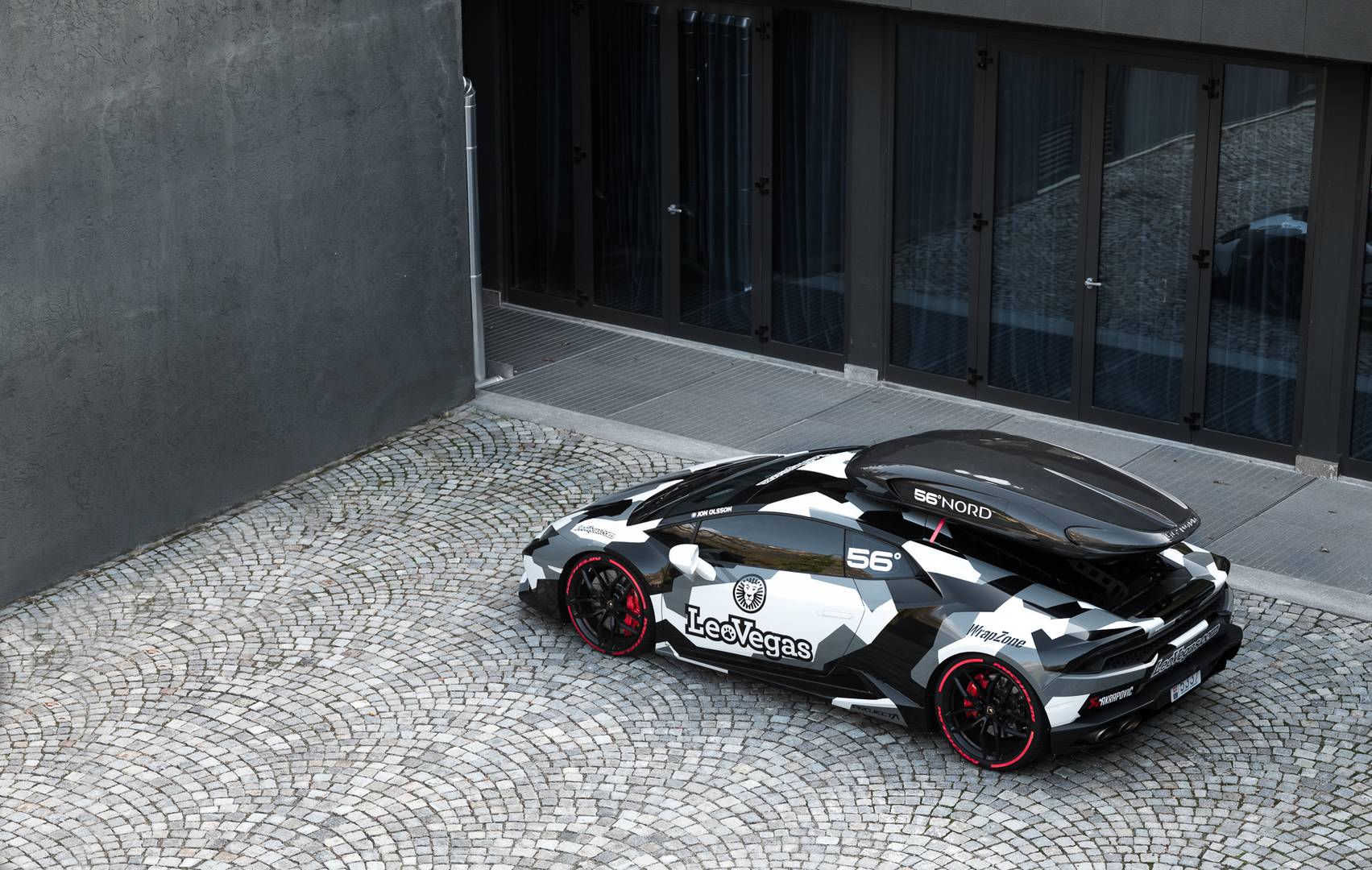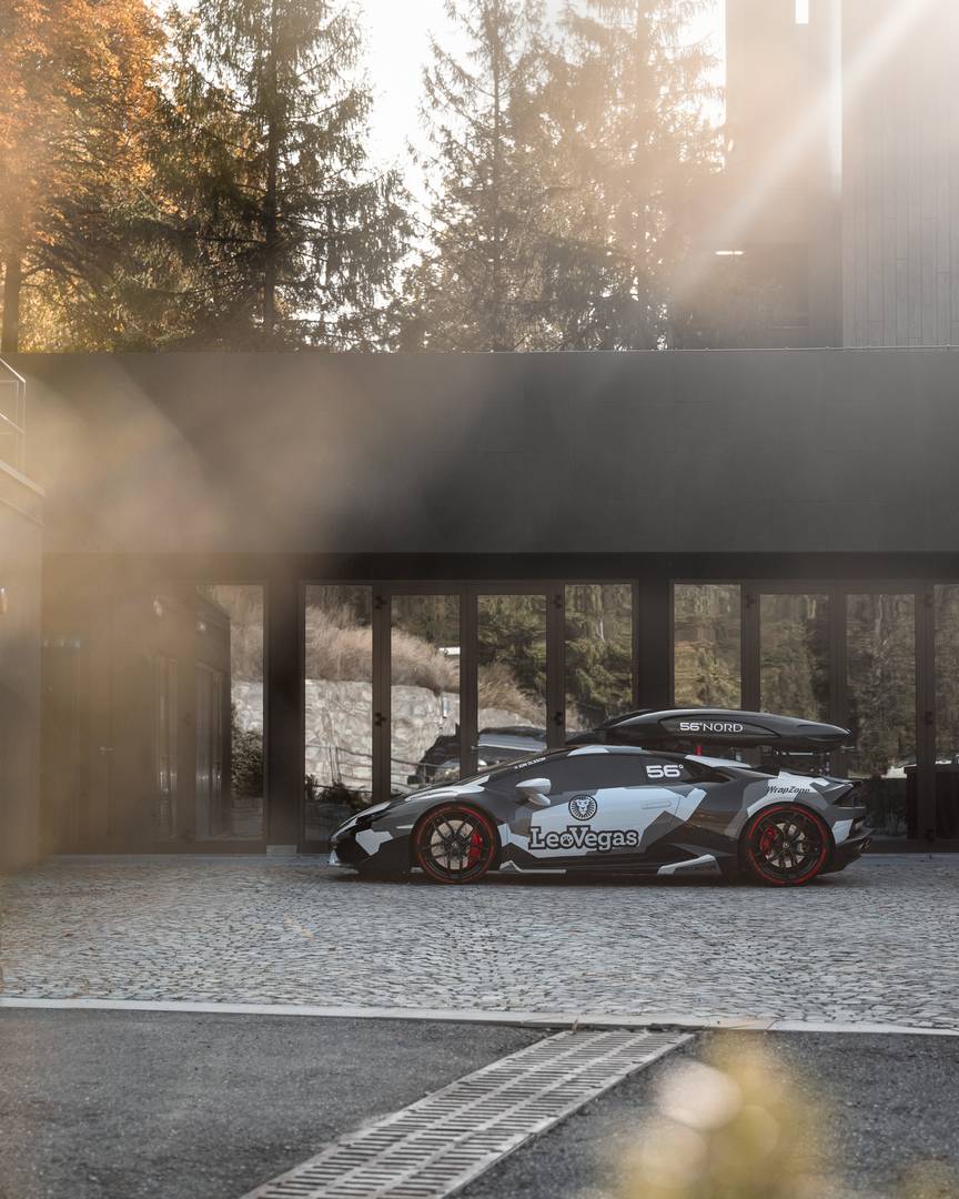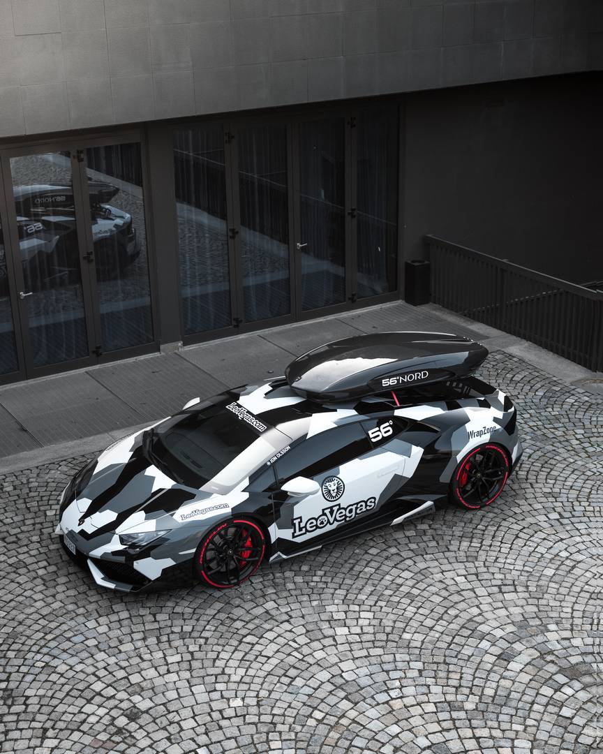 To zimo se bo švedski turni smučar in adrenalinski odvisnik Jon Olsson na ‘delo’ vozil z Lamborghinijem Huracán LP610-4 z 800 ”konji’‘ in obveznim strešnim kovčkom za smuči. Pod kovček iz kompozitnih vlaken se je podpisalo podjetje 56°Nord. Olsson svoje jeklene, pardon, karbonske konjičke, predeluje po lastnih zamislih, poleg nadgradnje in kovčka pa to vključuje tudi črno-belo prevleko.