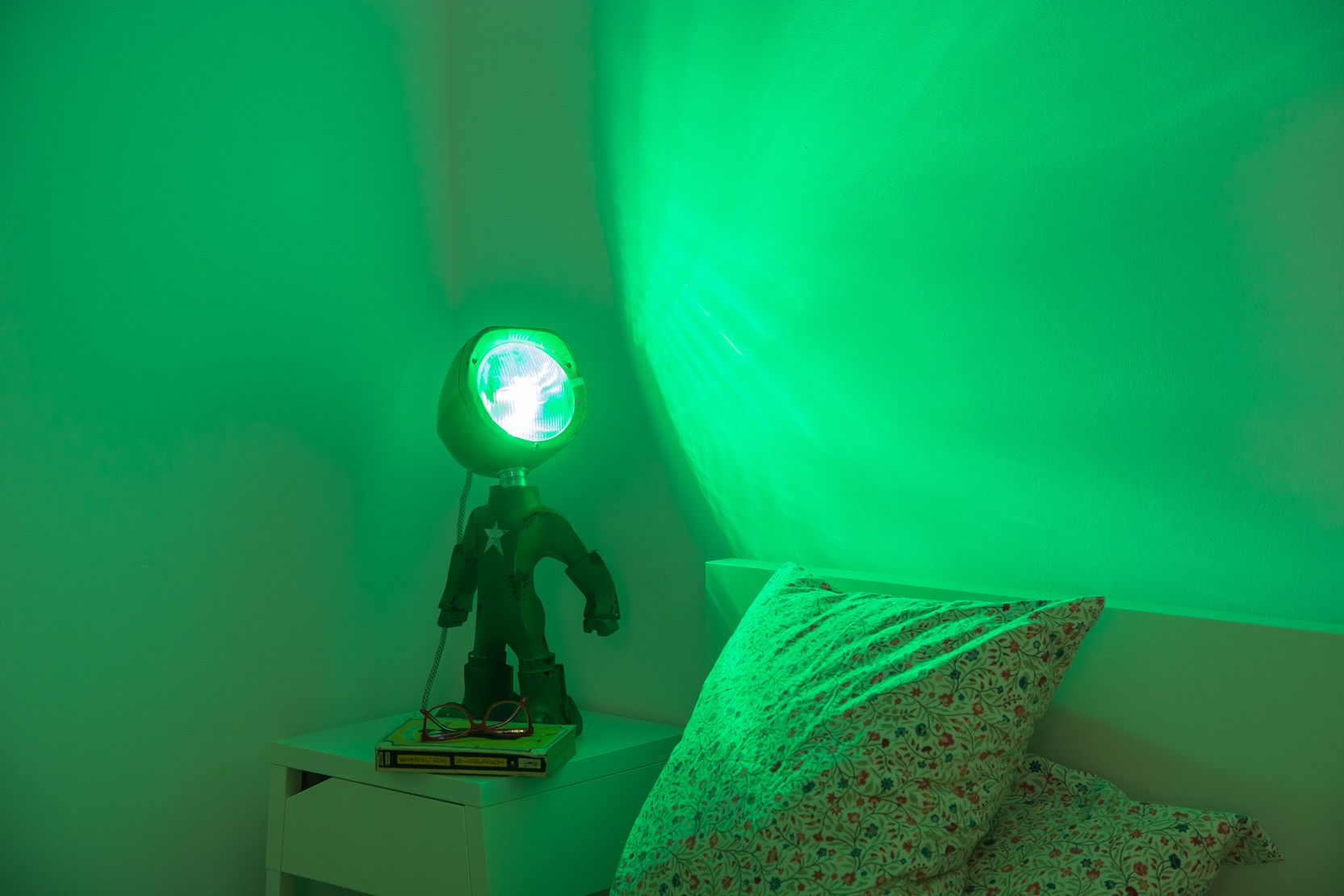Vsaka namizna svetilka Lampster je unikatna in ukrojena po meri, da se kar najbolj poda k slogu prostora in vaši osebnosti, glava robota, ki je vir svetlobe, pa je kakopak obračljiva.