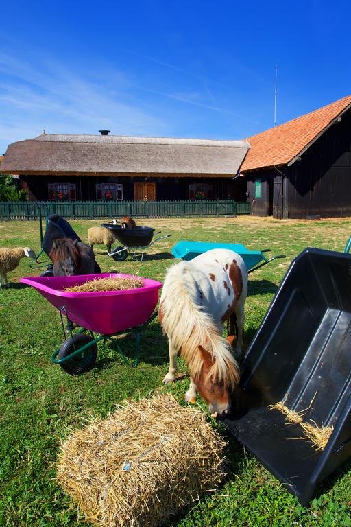 محلي je hiša zgrajena in opremljena v starem prekmurskem stilu, kar pomeni, da je pokrita s slamo, v njej sta prednja in zadnja iža, jedilnico s kuhinjo pa obogati še nepogrešljiva lončena peč. Pred domačijo vas bodo pozdravile prijazne živali (koze, ovce, poniji, kokoši, pavi, dva emuja, zajčki, muce…), za njo pa ribnik, ki nudi možnost ribolova. Počitniška hiška je primerna za 4 do 6 oseb in za vse, ki si želite podoživeti življenja naših babic in dedkov. Kot gostje domačije imate možnost uporabe hotelskega wellnessa.
