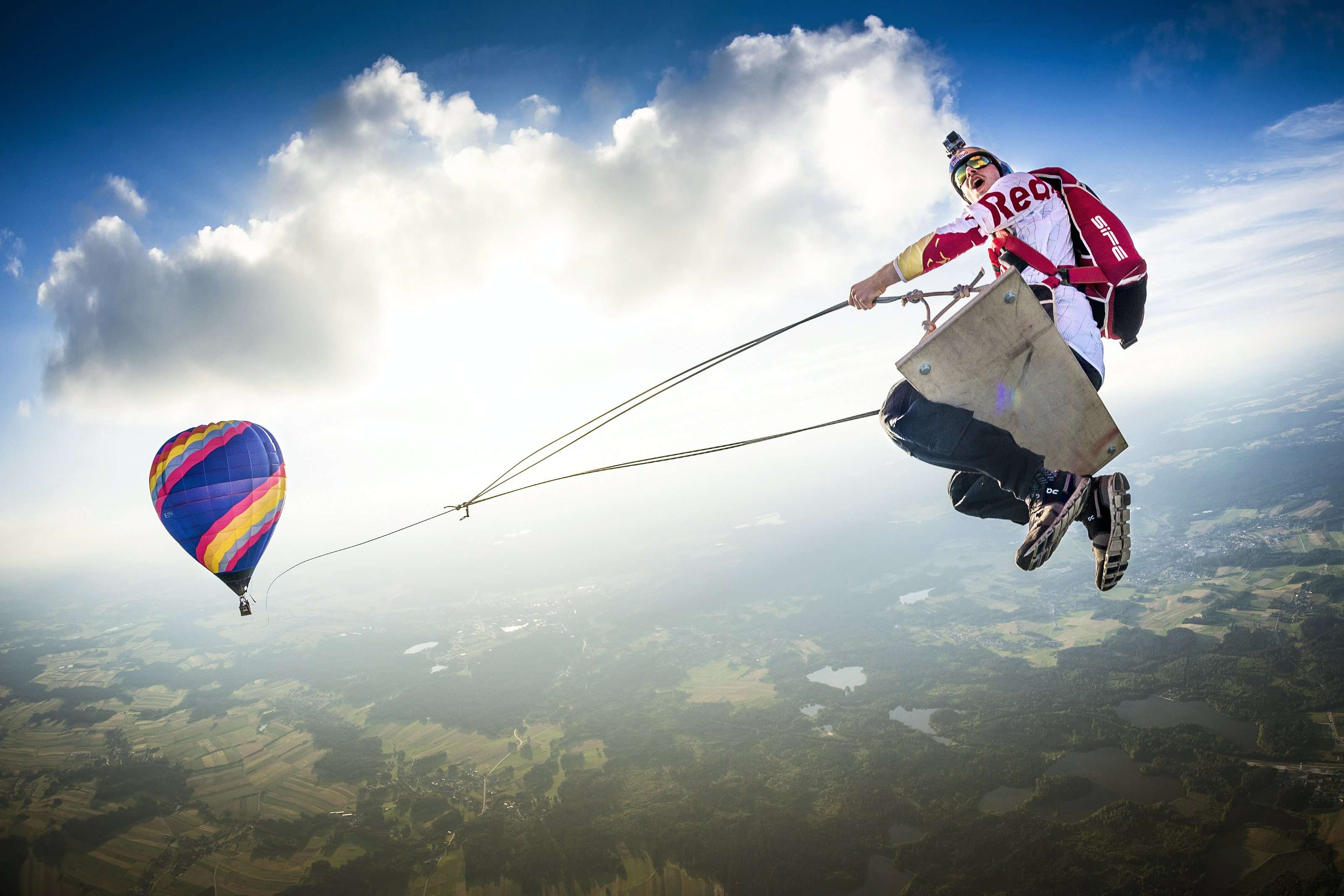Kvartet skakalcev se je vkrcal na zračni balon in 1800 metrov nad tlemi med dvema zračnima balonoma (razdalja je bila točno določena, saj je morala biti vrv ravno prav napeta) postavila mega gugalnico s 125-metrsko vrvjo, s čimer je postala najdaljša in najvišje pritrjena gugalnica na svetu. Gugali so namreč na višini med 1500 in 2000 metri.