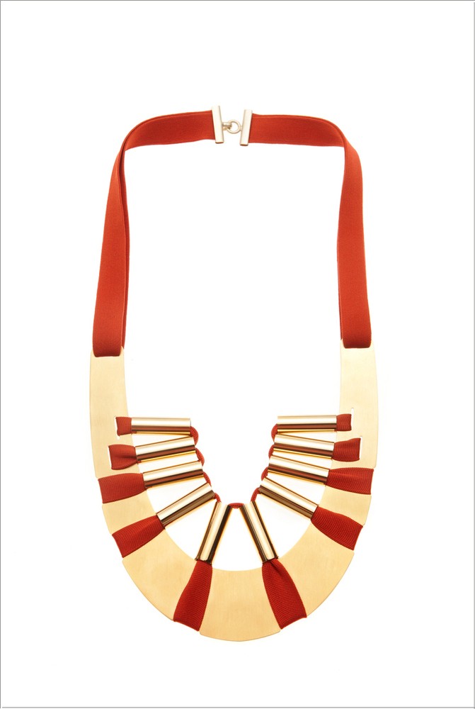 Iranska oblikovalka Maryam Keyhani ustvarja prestižne kreacije, ki so prave skulpture iz blaga v pretanjenih barvni odtenkih. Uhani izraelske oblikovalke Moran Porat so narejeni iz pozlačene kovine in blaga. Največji vtis pa so na nas naredili izdelki Marion Vidal ter njena kolekcija iz džersija in pozlačene kovine, ki dokazuje, da je lahko nakit iz blaga enako glamurozen in še bolj estetski kot klasičen nakit.