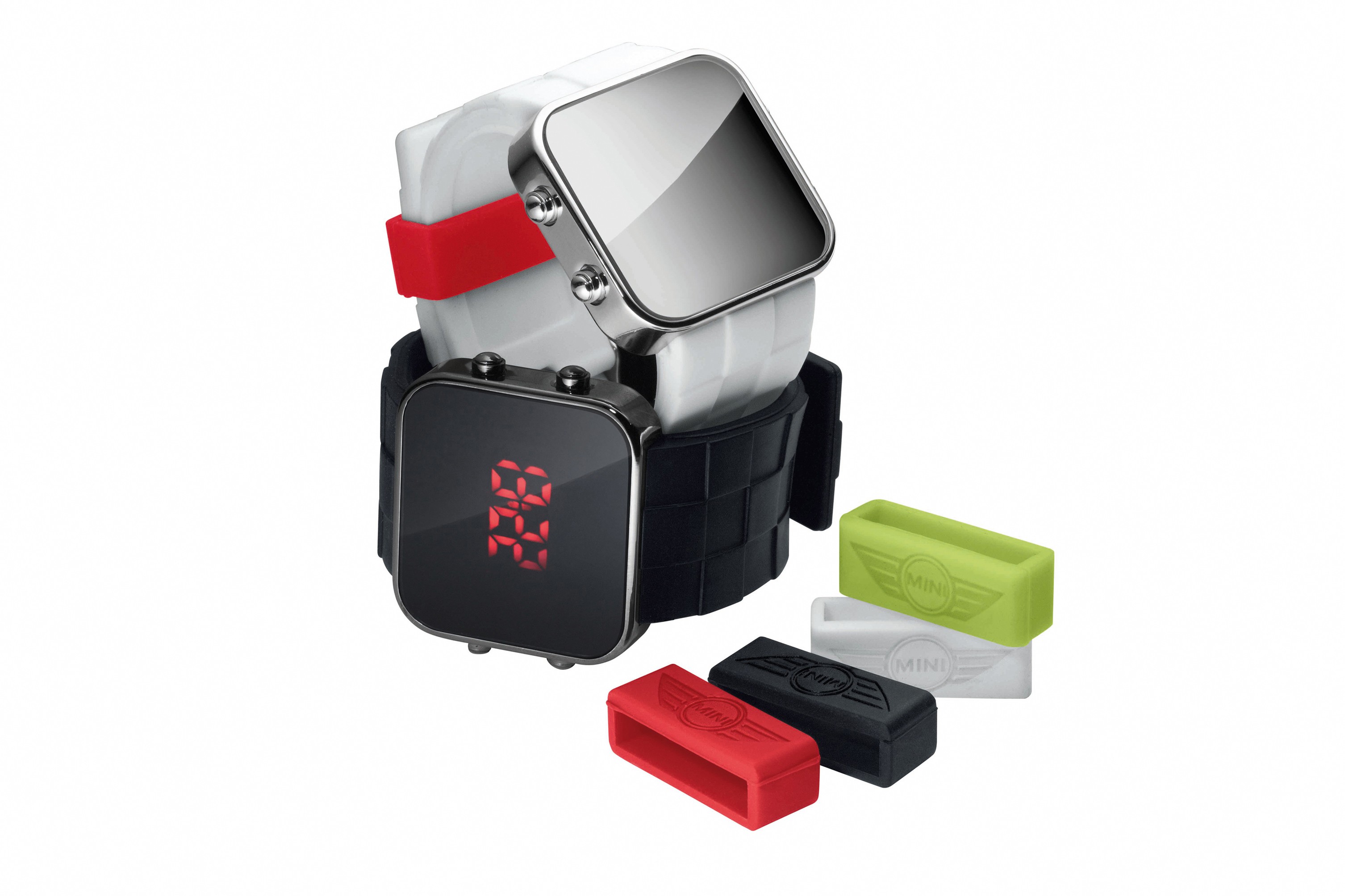 Športne ure imajo nezamenljiv pečat znamke ميني in izstopajo z izvirnimi oblikovalskimi podrobnostmi. MINI predstavlja pet zanesljivih spremljevalcev za zapestje, ki so funkcionalni in enostavni za uporabo in tako nadaljujejo tradicijo znamke MINI. Vse ure, kot tudi številni drugi novi dodatki iz MINI Lifestyle kolekcije so na voljo od septembra 2013 pri pooblaščenih prodajalcih in serviserjih vozil MINI ter na spletni strani www.mini-shop.com.
