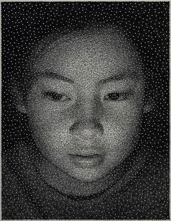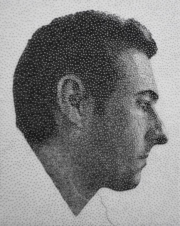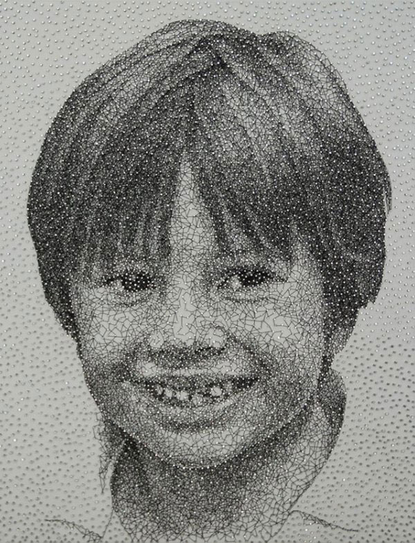 Stvaritve umetnika Kumi Yamashita se zdijo kot realne preslikave. Kar jih dela edinstvene, je posebna tehnika, ki jo pri tem uporablja. Z ovijanjem niti okoli tisoče žebljičkov tako ustvarja portretiranje sijočih obrazov.