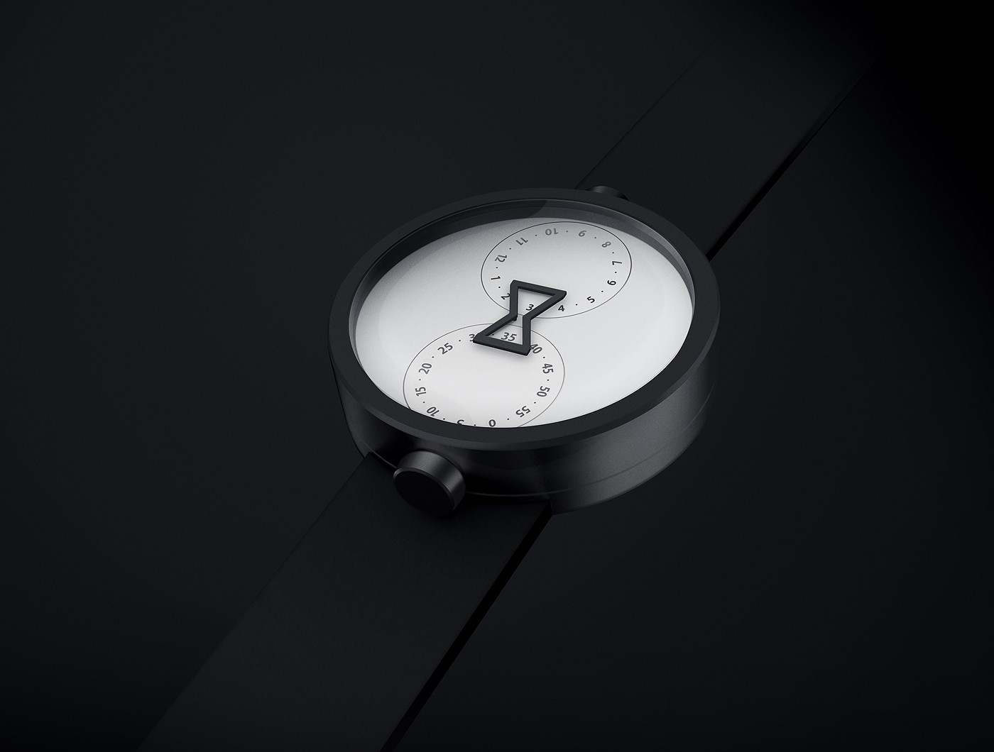Minimalistična ساعة اليد OZO Watch se lahko pohvali s kar dvema številčnicama, ki družno kažeta točen čas. Zgornja šteje ure, spodnja pa minute. Namesto kazalcev, ki jih sploh nima, krožita številčnici, trenutni čas pa je uokvirjen v silhueti peščene ure na sredini OZO ure.