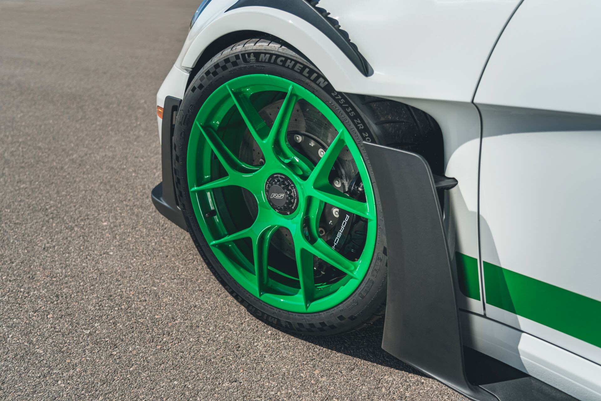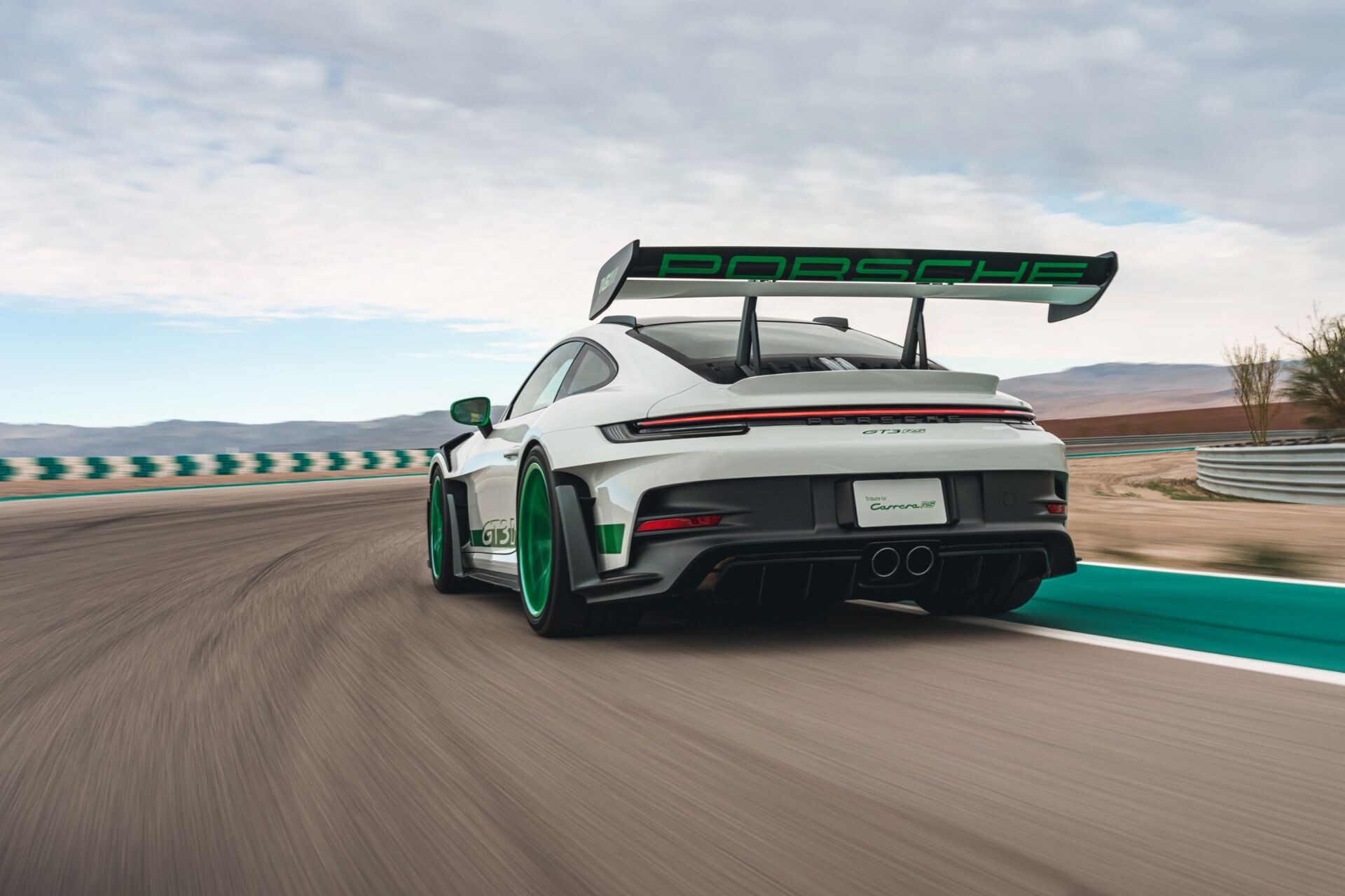 طرد Porsche 911 GT3 RS Tribute to Carrera RS je osupljiva umetnina, ki se ponaša s številnimi popravki, tako znotraj kot zunaj, ki se poklanjajo izvirnemu modelu RS-spec iz leta 1973. Začenši s posebnim belim ključem, ima avto množico elementov Exclusive Manufaktur في Python Green barvi, enakem odtenku, ki je krasil originalni RS 2.7. Sem spadajo magnezijeva platišča, pokrovi ogledal, grafika GT3 RS na vratih, ekskluzivna grafika zadnjega odbijača za model in poseben logotip RS z ameriško zastavo na blatniku, ki je okrašen tudi z napisom PORSCHE na spodnji strani. Poklon vključuje tudi pokrove stebla ventilov RS, pokrove tipk in okvir plošče po meri, vse v barvi Python Green.