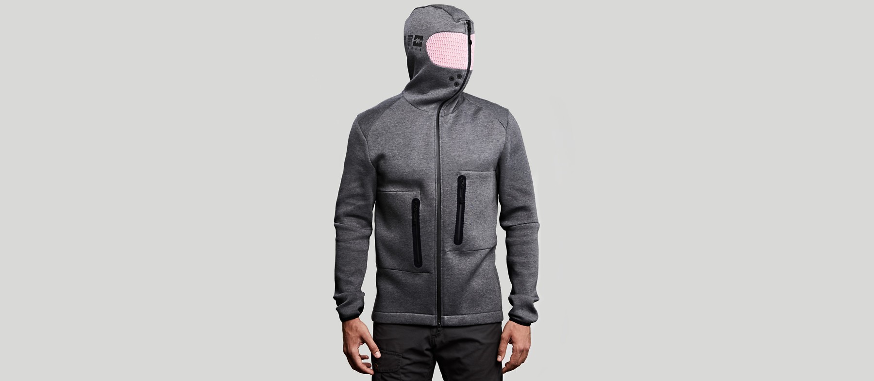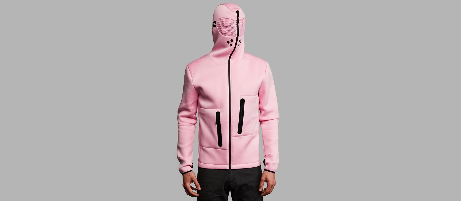 Relaxation Hoodie je kot izolacijski rezervoar, ki ga vzamete s seboj, kamorkoli se odpravite. Brez tehnologije in posebnega napora jopo preprosto z zadrgo zaprete, vključno z glavo, in se odklopite od vsega. Tisto, kar to jopo naredi posebno, je roza vizor (roza krog okoli oči), ki reproducira barvo tako, da pogled pred vašimi očmi postane rožnat.