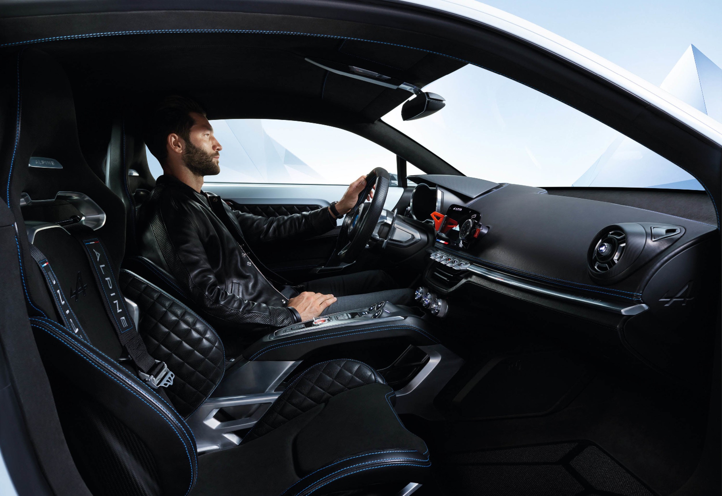 Notranjost je koktajl iz usnja, tkanin iz mikrovlaken, ogljikovih vlaken, aluminija in svetlobnih ”učinkov” (osvetljena odpirala vrat, modro osvetljena glavna stikala ipd.). Gre za pravo igro kontrastov s tablično multimedijsko napravo s kronometrom na sredini armaturne plošče v osrednji vlogi. Voznik bo imel pogled na instrumentno ploščo s prilagodljivim zaslonom TFT (Thin Film Transistor), volan s tremi prečkami in dvema lopaticama za prestavljanje, stopalki in počivalo za noge pa imajo vkovan vzorec z alpskimi vrhovi.