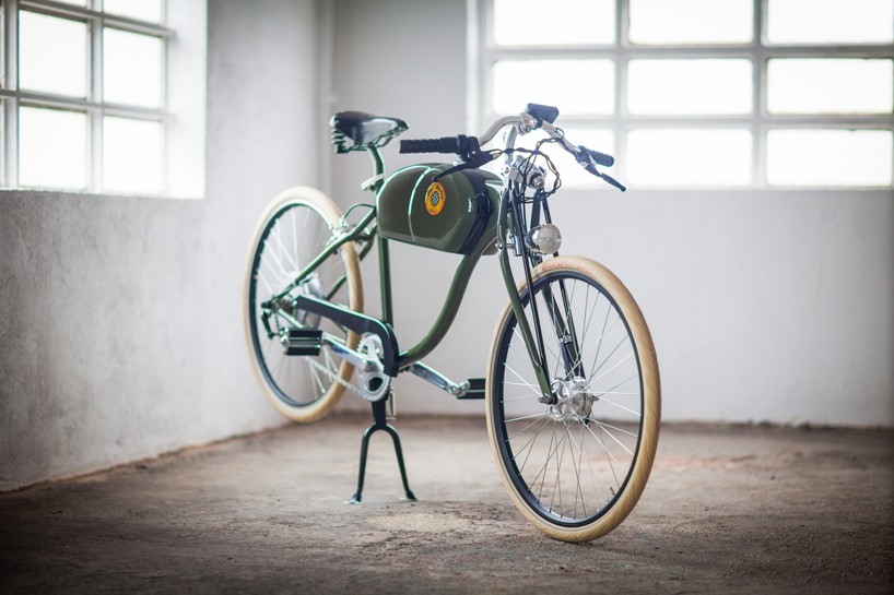 Motorski videz jim daje aluminijast ‘skelet’ in ukrivljeno krmilo, مظهر رجعي poudarja usnjeni sedež in ‘tank’, ki pa ni rezerviran za bencin, pač pa 250w električni motor in Li-Ion baterijo NCM, v leto 2014 pa jih poleg električnega srca prestavi motorika, شاشة LCD s kolesarskim števcem, sposobnost razvijanja hitrosti do 65 km/h و نظام بدء توقف, ki omogoča, da jih v pogon spravite brez začetnega poganjanja. Oto požen, mi smo “prpravlen”!