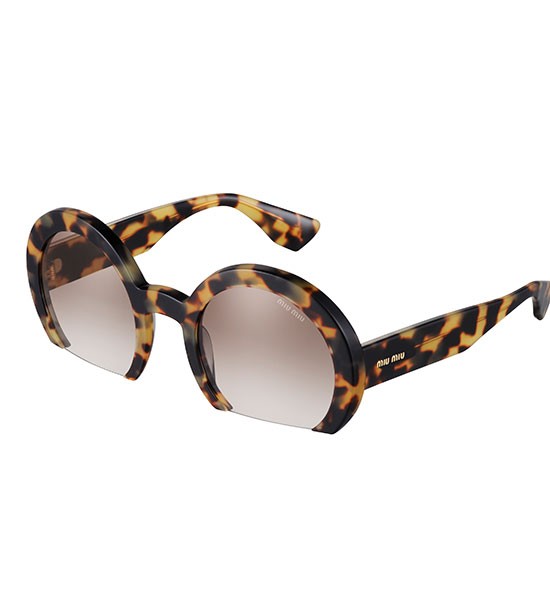 Elegantna sončna očala ميو ميو “Resoir” iz kolekcije sončnih očal pomlad-poletje 2015 se gibajo v trendi futurističnih vodah, ki jih napoveduje tudi večina resort kolekcij 2016. Nenavaden dizajn in sofisticiran pridih sta kot nalašč za sodobno upornico, ki se ne pusti omejevati, je rada opažena in vedno urejena. Izbiramo lahko med elegantno črno, opaznim leopard vzorcem, safari zeleno in modelom v nežno rožnatem odtenku.