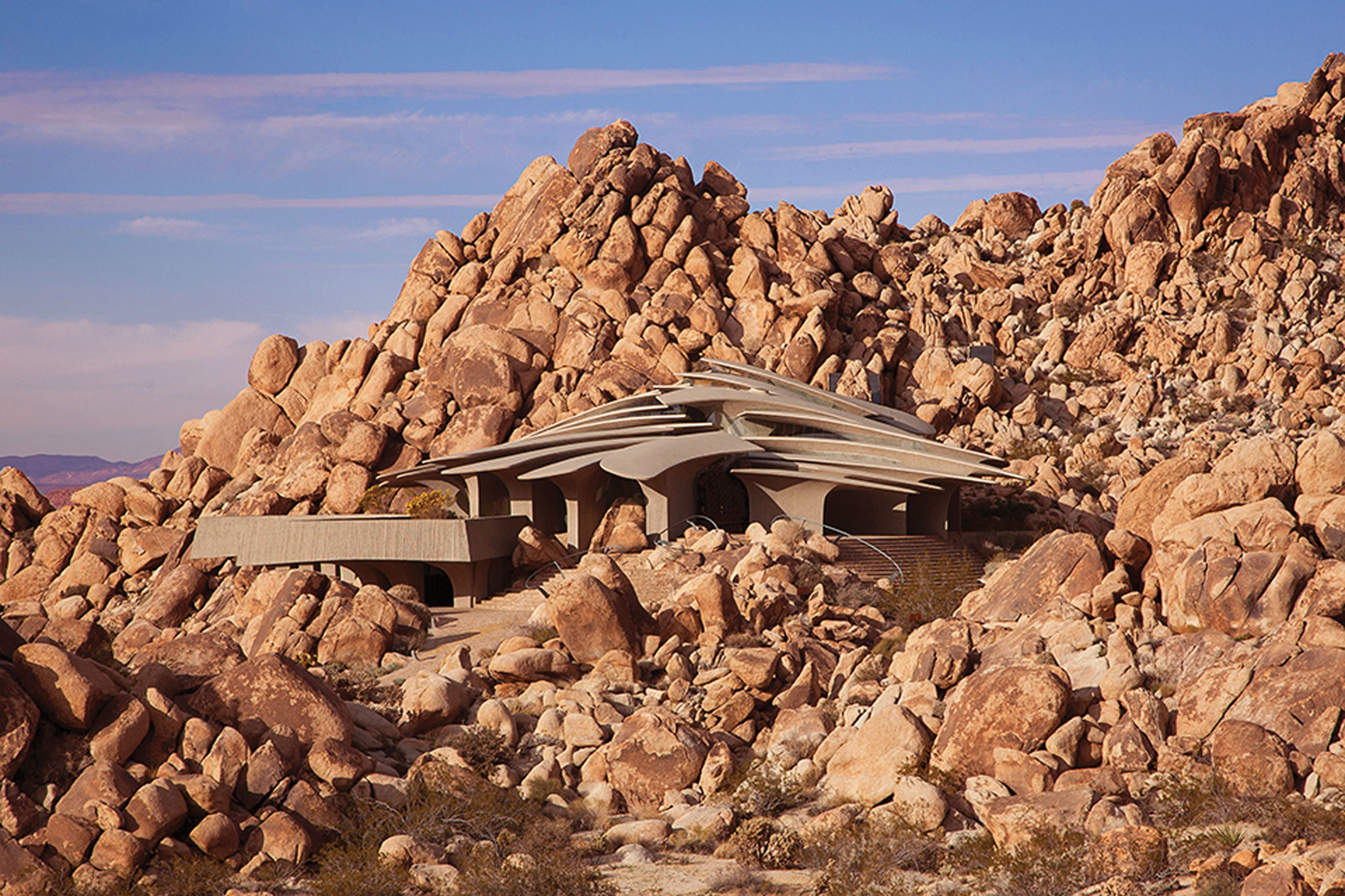 حول 432 kvadratnih metrov velika hiša iz betona, jekla, stekla in bakra je zgrajena na živi granitni skali. Zunanjost poslopja spominja na ogromnega členonožca do vesoljskega plovila, odvisno kje stojimo. Notranjost pa poseže še po bolj radikalnih idejah. Naravno bogata svetloba se zlije s skalami in neverjetno notranjo opremo, ki jo je oblikoval John Vugrin.
