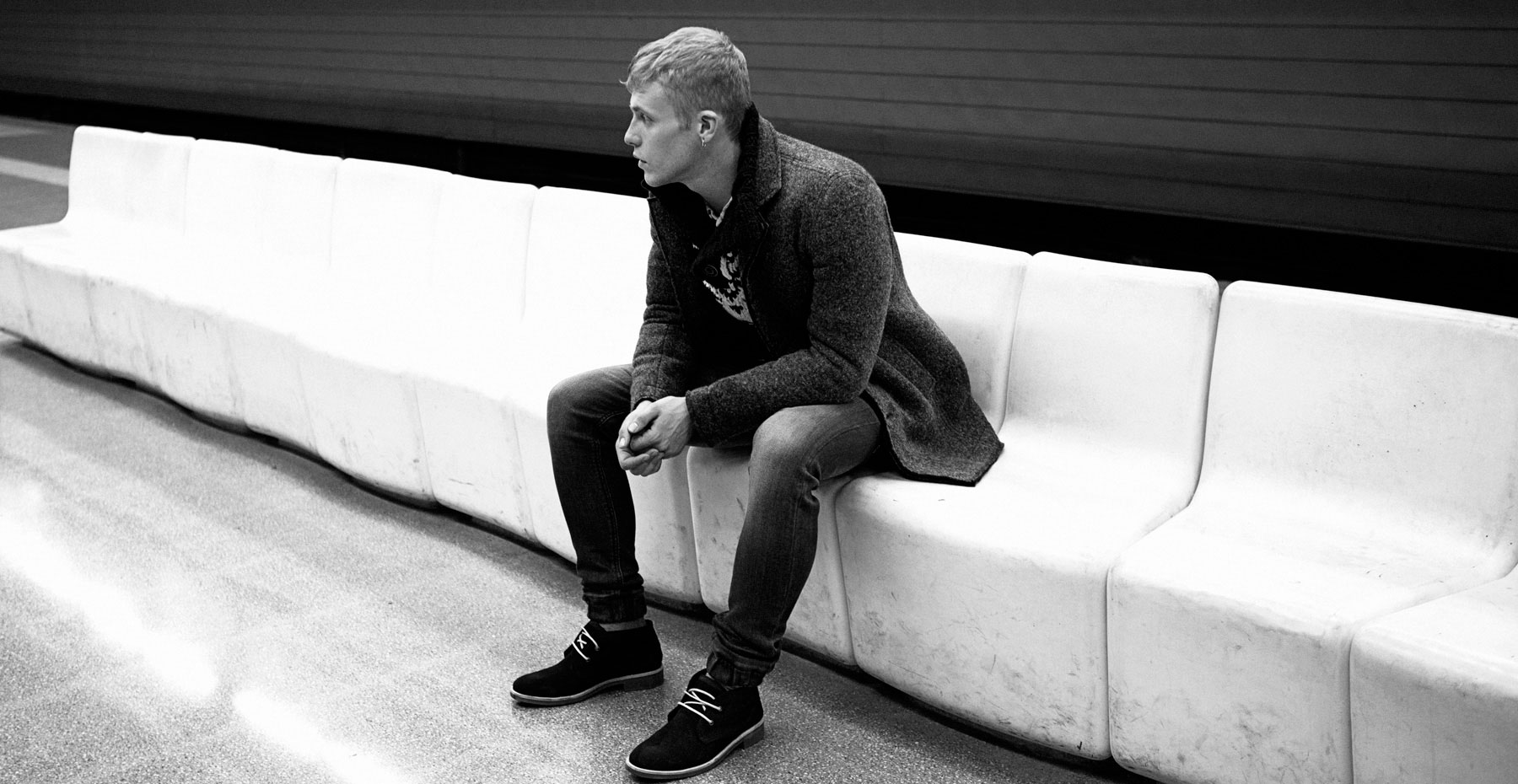 Bershkin moški stavi letos na ozke hlače, ki jih dopolni z ohlapnimi zgornjimi deli, v umirjenih tonih, ki se nagibajo med rjavimi, sivimi in modrimi odtenki. Casual videz dopolni s kul pleteno kapo.