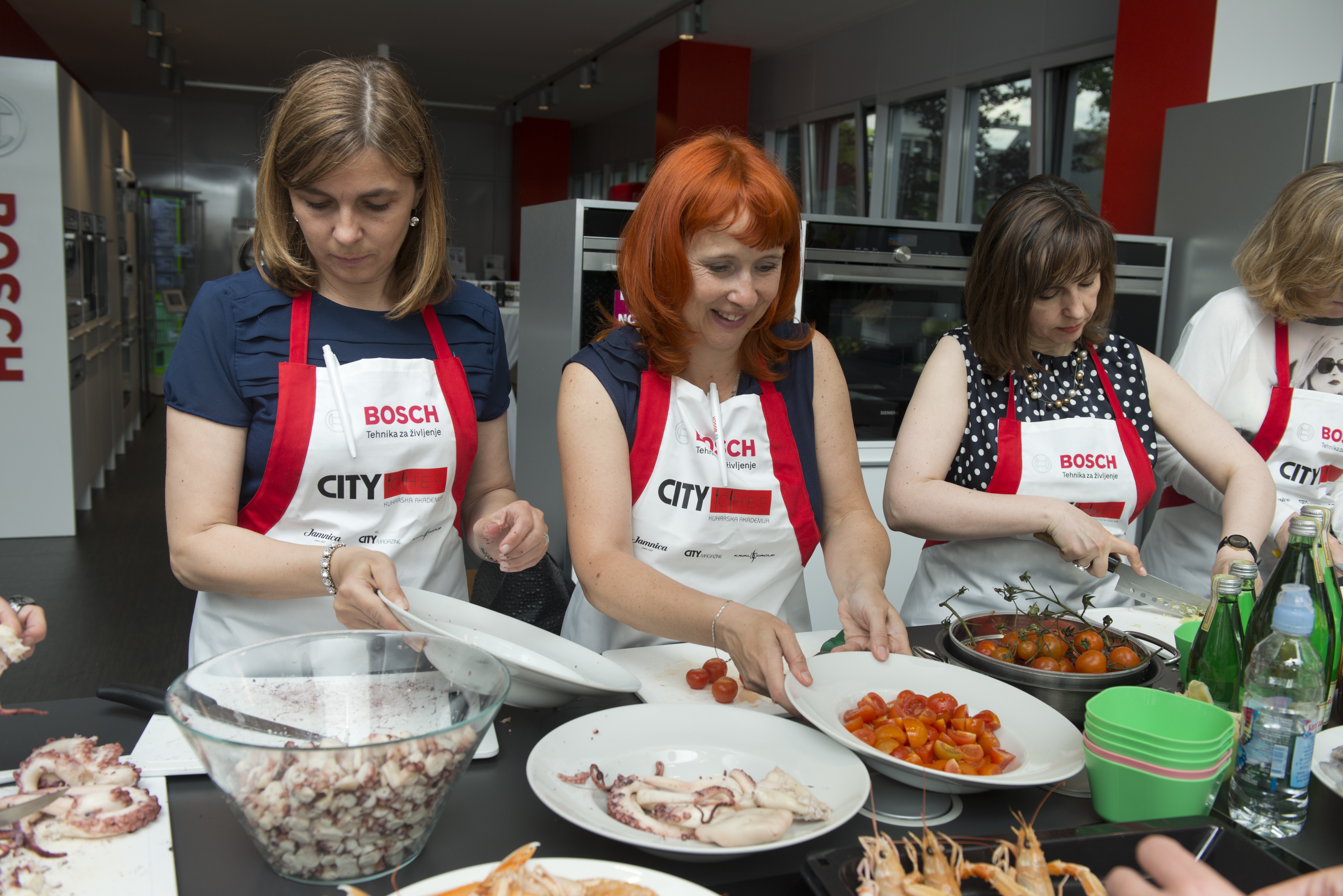 Glavne jedi je v prenovljenem salonu Bosch Siemens v Ljubljani pripravljal glavni kuhar Gostilnice in pizzerije Kaval, Dragan Marjanović, za sladke skrivnosti pa je poskrbel slaščičar iz Lolite, Grega Rode. Nepogrešljiv partner dobre hrane pa je vsekakor kozarec dobrega vina.