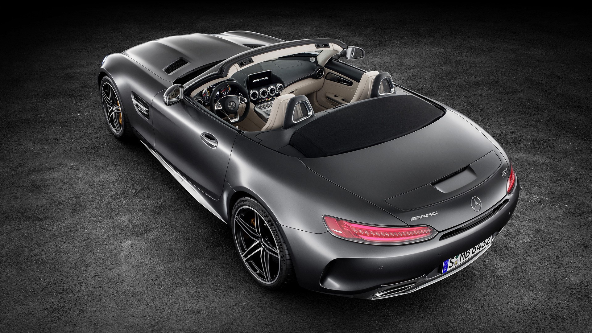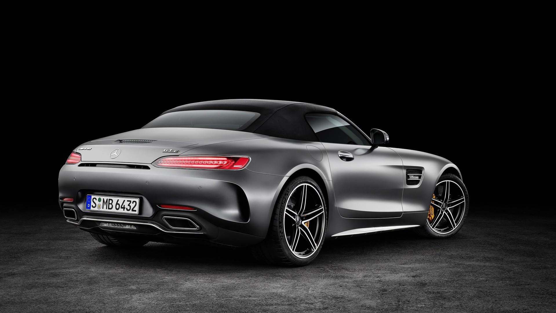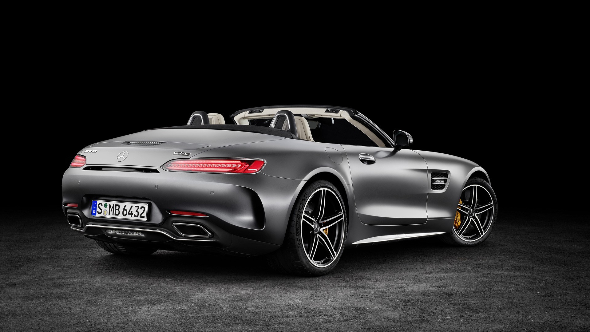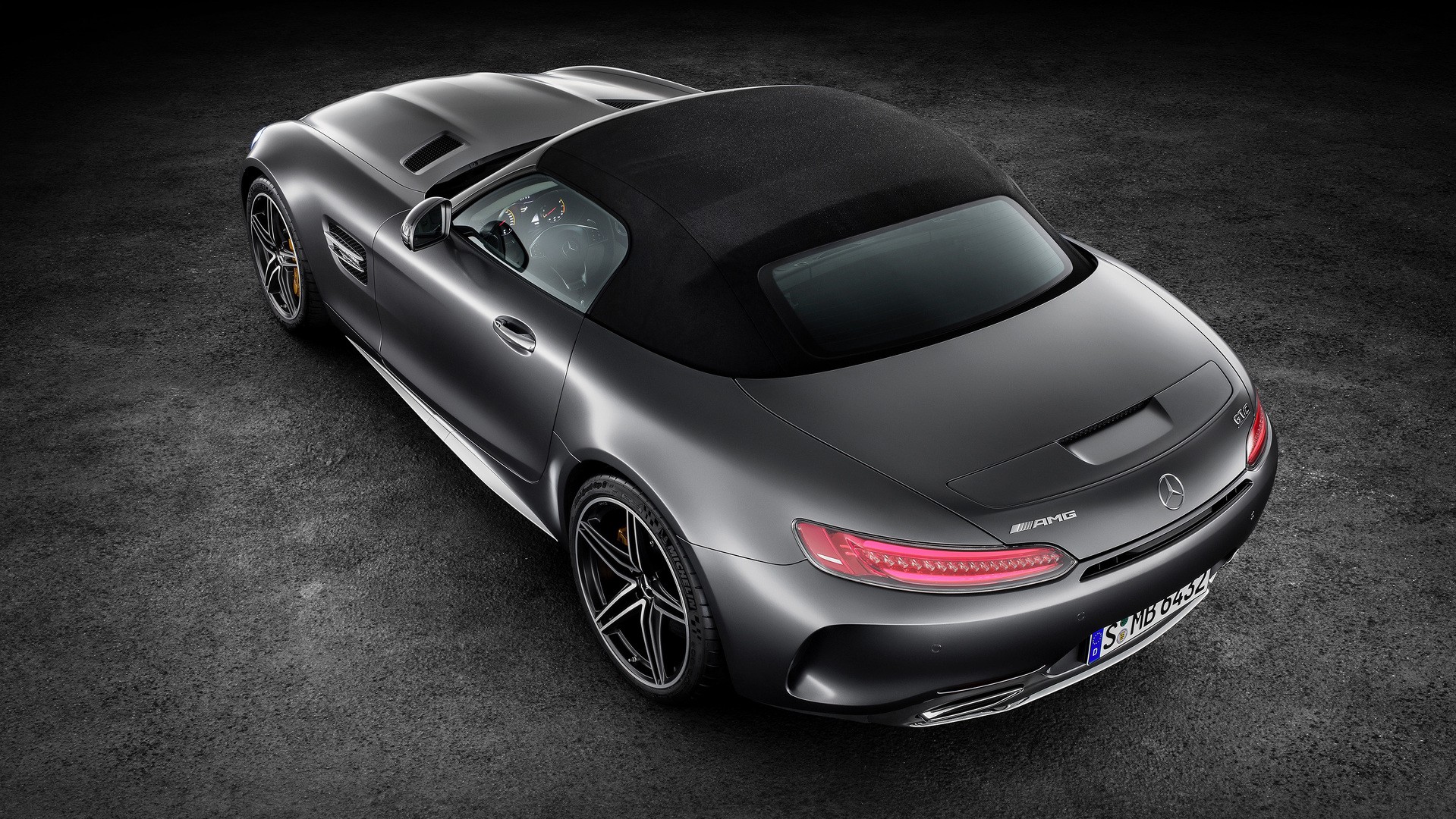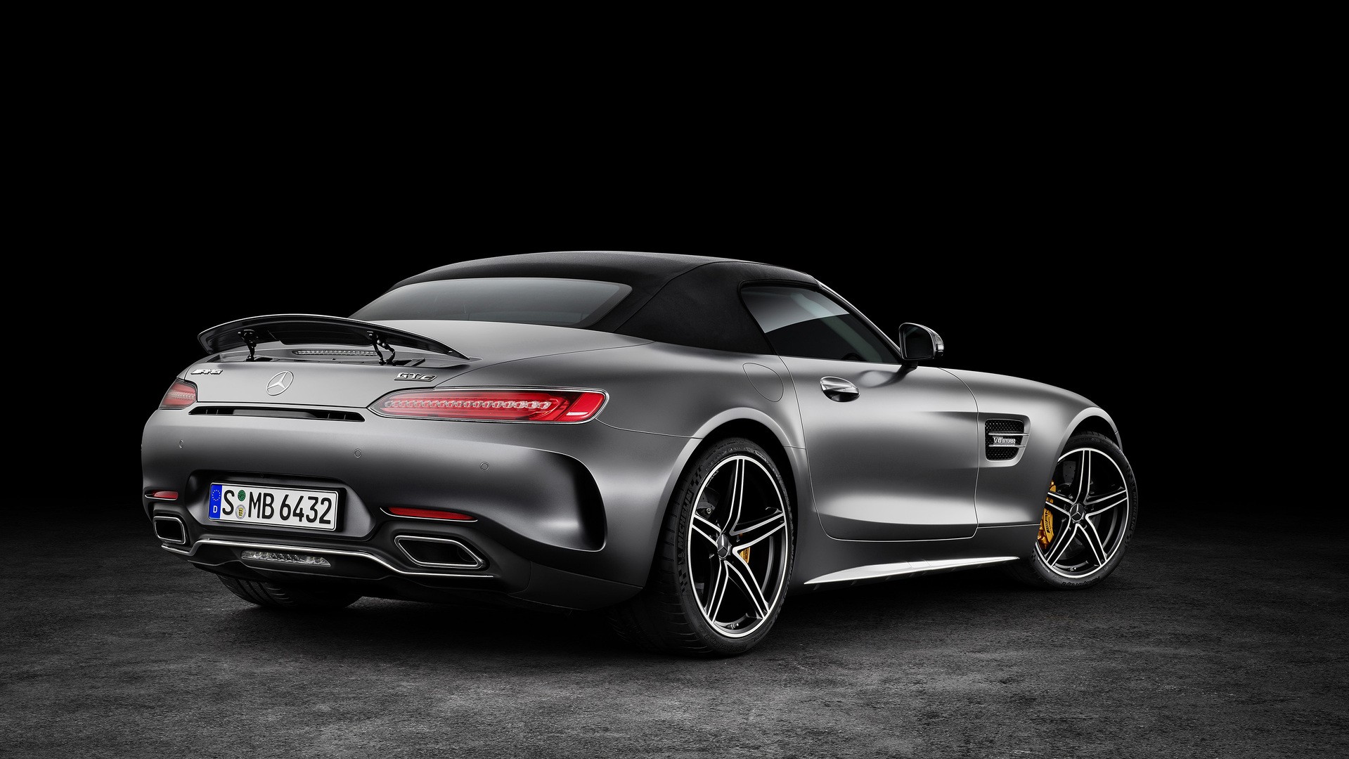 Mercedes-Benz je na pariškem avtosalonu predstavil brezstrešno navezo modela Mercedes-AMG GT, ‘enojajčna dvojčka’ AMG GT Roadster in AMG GT C Roadster. Oba uporabljata 4-litrski biturbo motor V8, le da prvi iz njega iztisne 476 KM (350 kW, najvišji navor 630 Nm), močnejša izpeljanka pa 557 KM oz. 410 kW, kar je le 20 kW manj kot prvak razreda, GT AMG GT R. GT C se od 0 do 100 km/h izstreli v 3,7 sekunde, za trohico manj zmogljiva različica pa za to potrebuje 4 sekunde. In medtem ko slednji zmore hitrosti do 302 km/h, se GT C-ju merilnik ustavi pri 316 km/h. AMG GT C Roadster si je od modela AMG GT R sposodil kar precej športnega znanja. Med drugim krmiljenje zadnjega para koles (ti spreminjata kot in s tem pomagata pri vožnji skozi zavoje) in elektronsko zaporo diferenciala na zadnji premi, ki ga dopolnjuje športno vzmetenje AMG Ride Control.