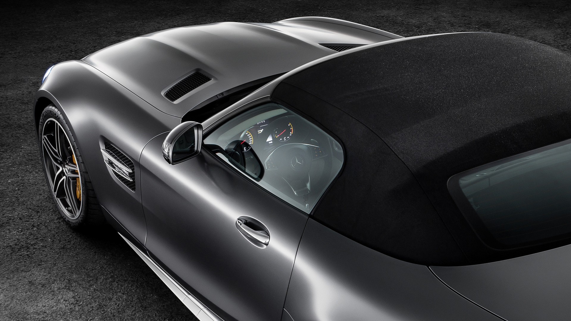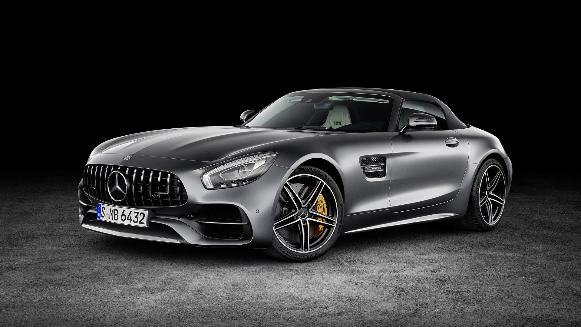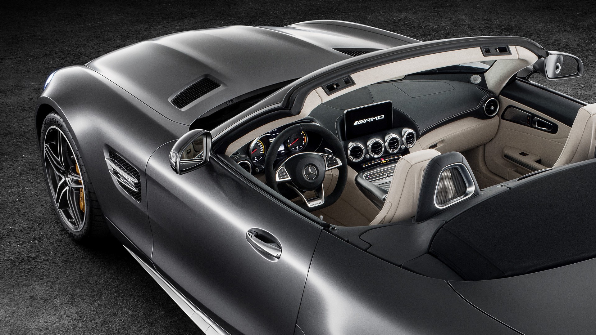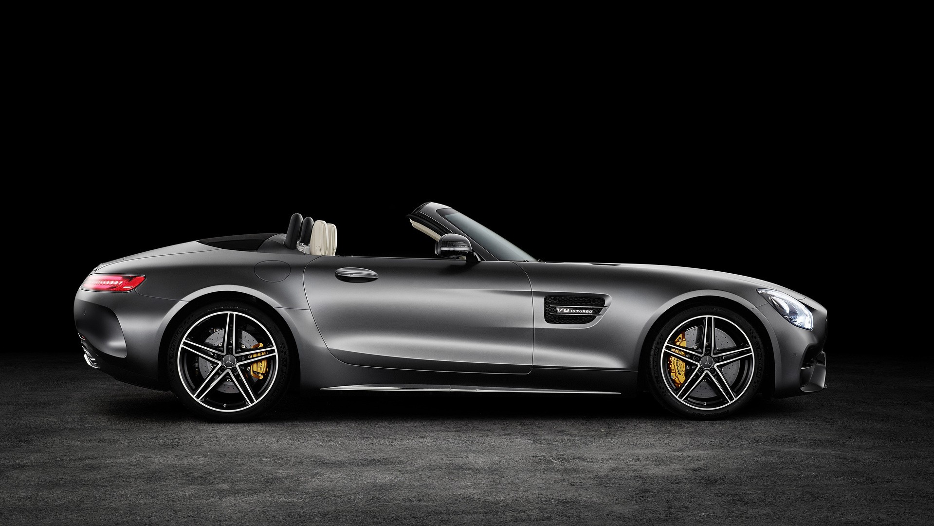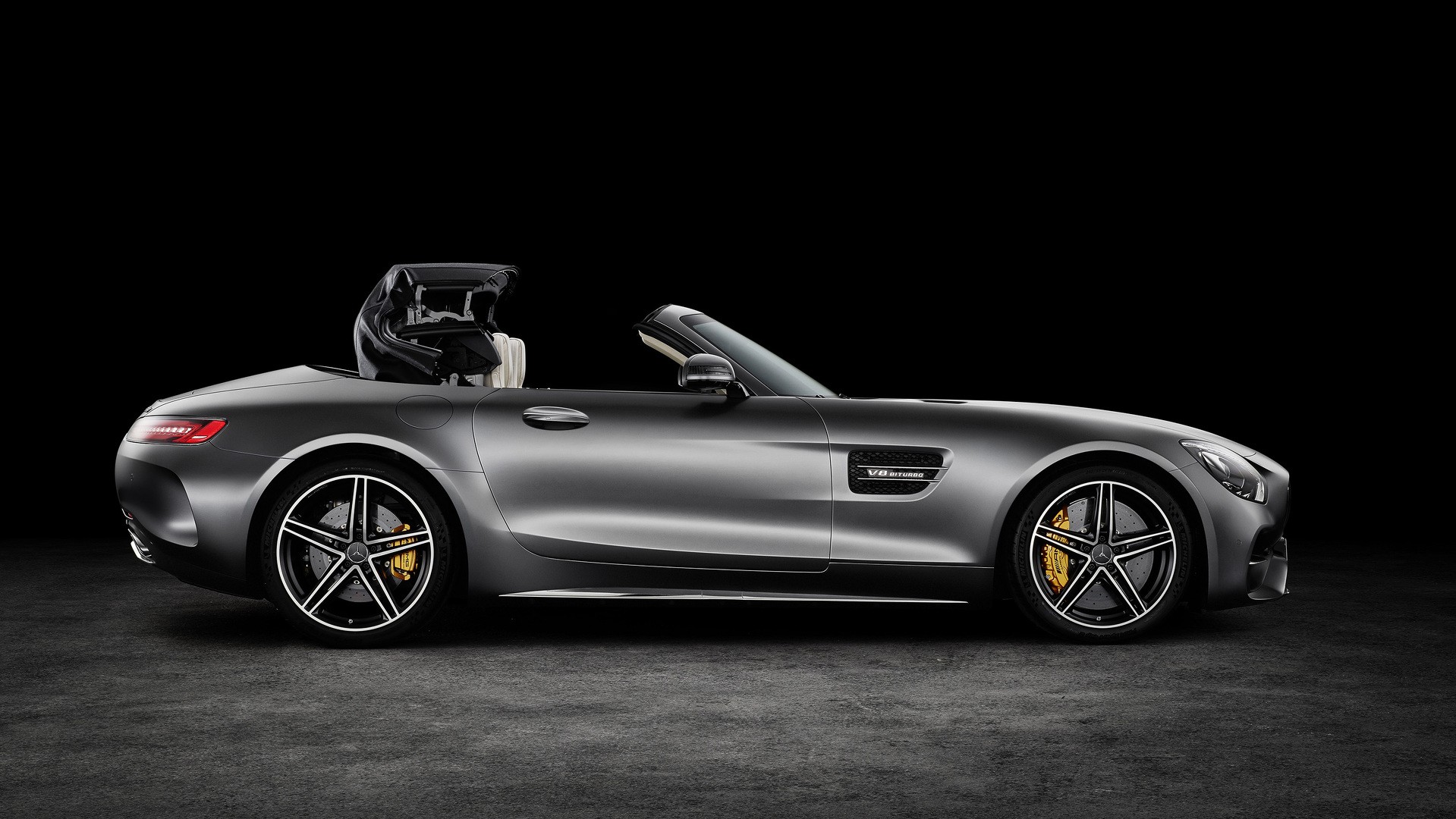 Mercedes-Benz je na pariškem avtosalonu predstavil brezstrešno navezo modela Mercedes-AMG GT, ‘enojajčna dvojčka’ AMG GT Roadster in AMG GT C Roadster. Oba uporabljata 4-litrski biturbo motor V8, le da prvi iz njega iztisne 476 KM (350 kW, najvišji navor 630 Nm), močnejša izpeljanka pa 557 KM oz. 410 kW, kar je le 20 kW manj kot prvak razreda, GT AMG GT R. GT C se od 0 do 100 km/h izstreli v 3,7 sekunde, za trohico manj zmogljiva različica pa za to potrebuje 4 sekunde. In medtem ko slednji zmore hitrosti do 302 km/h, se GT C-ju merilnik ustavi pri 316 km/h. AMG GT C Roadster si je od modela AMG GT R sposodil kar precej športnega znanja. Med drugim krmiljenje zadnjega para koles (ti spreminjata kot in s tem pomagata pri vožnji skozi zavoje) in elektronsko zaporo diferenciala na zadnji premi, ki ga dopolnjuje športno vzmetenje AMG Ride Control.