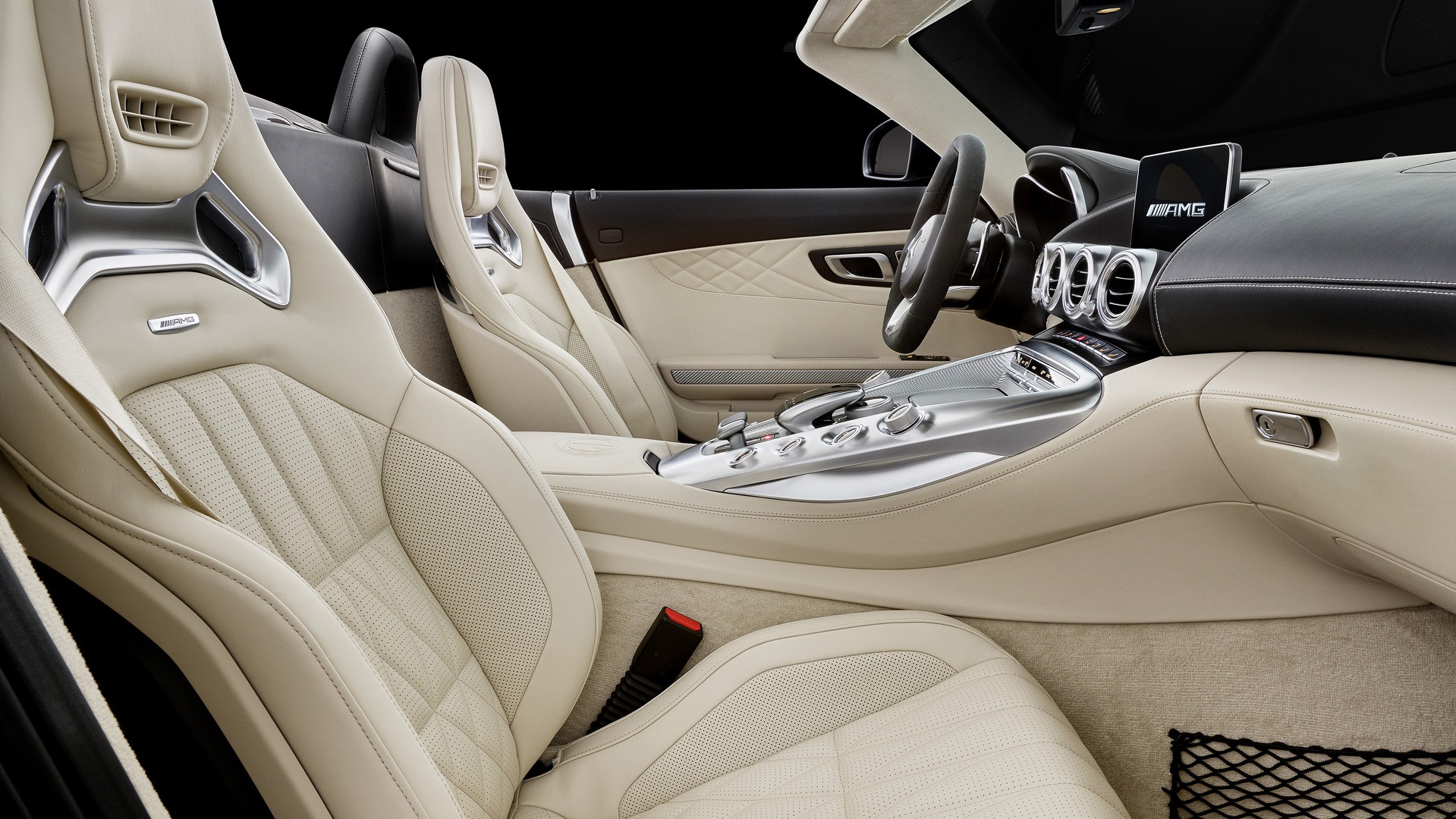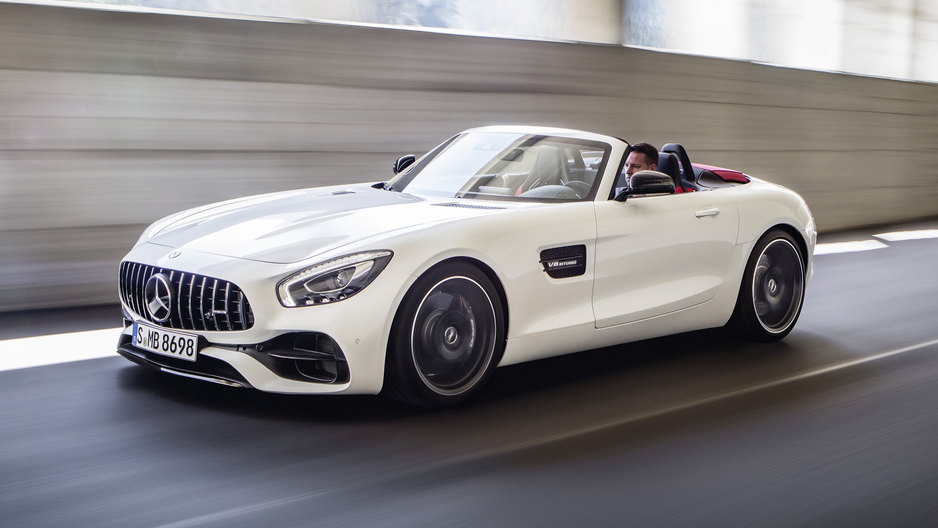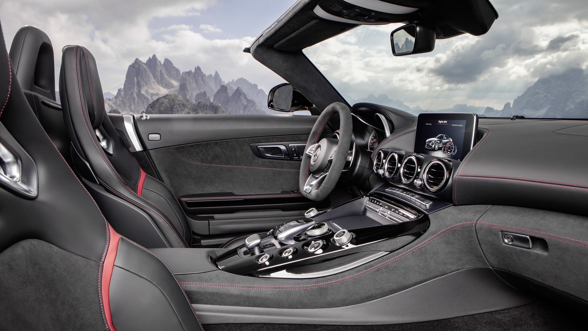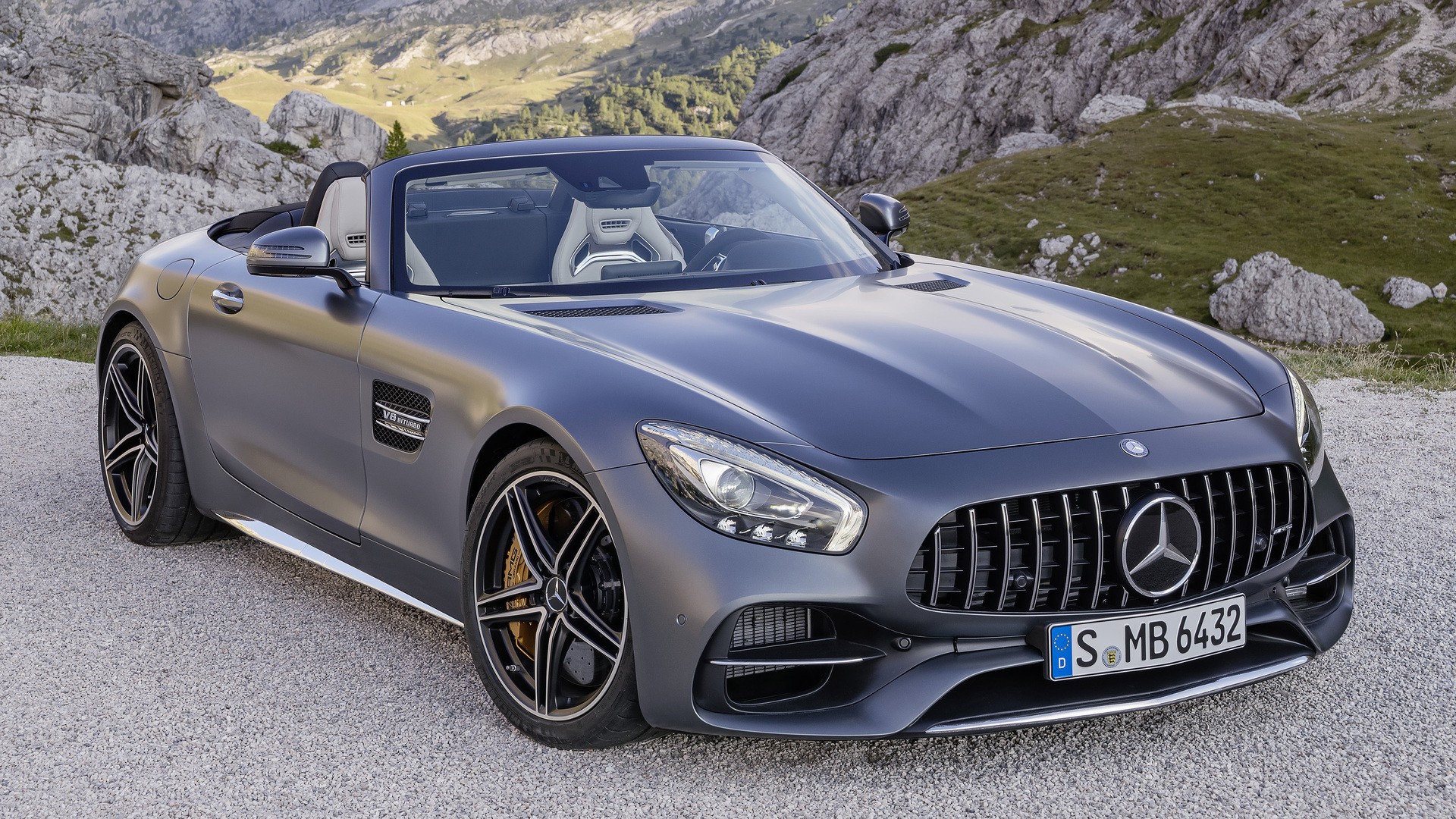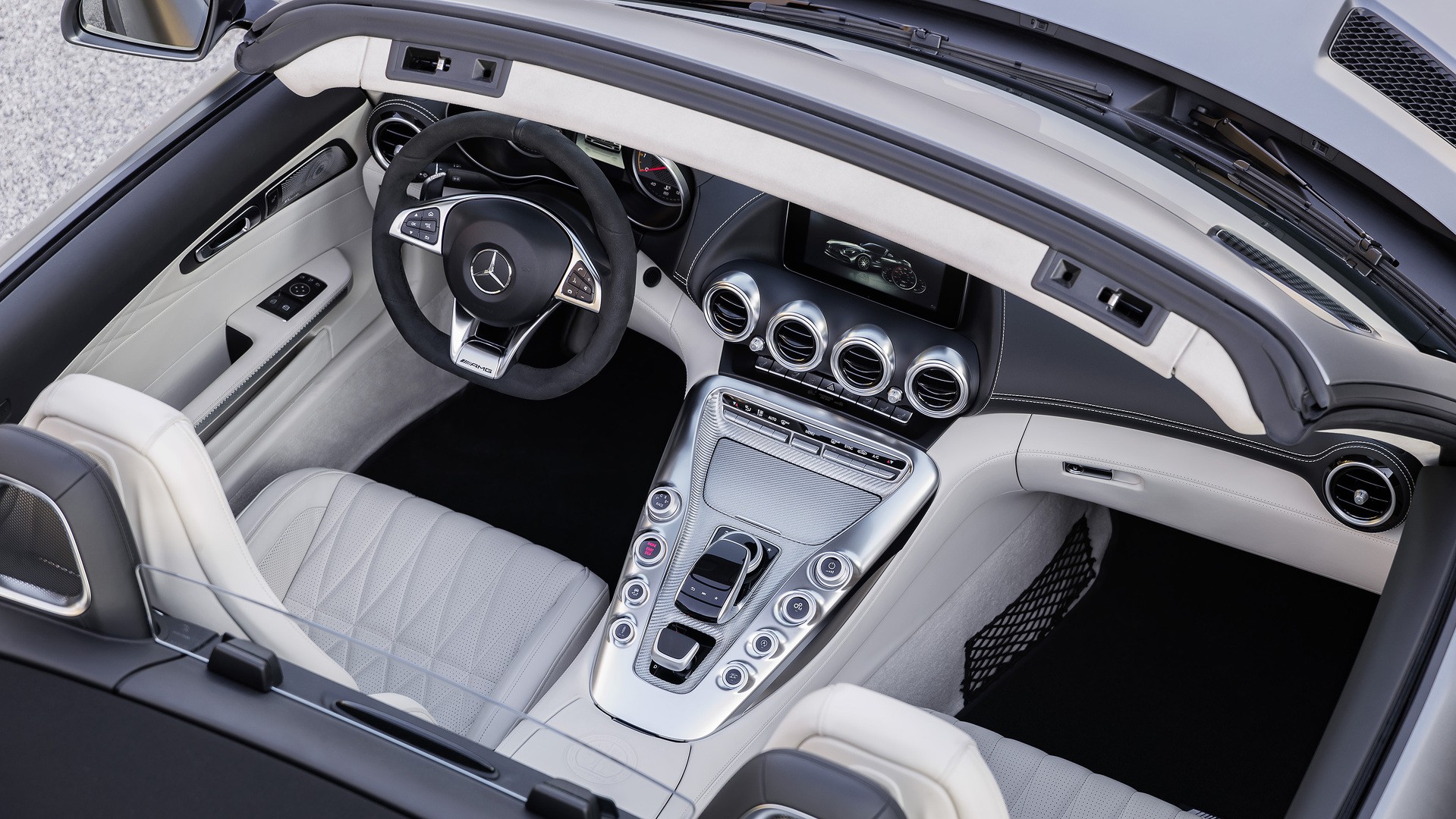 Mercedes-Benz je na pariškem avtosalonu predstavil brezstrešno navezo modela Mercedes-AMG GT, ‘enojajčna dvojčka’ AMG GT Roadster in AMG GT C Roadster. Oba uporabljata 4-litrski biturbo motor V8, le da prvi iz njega iztisne 476 KM (350 kW, najvišji navor 630 Nm), močnejša izpeljanka pa 557 KM oz. 410 kW, kar je le 20 kW manj kot prvak razreda, GT AMG GT R. GT C se od 0 do 100 km/h izstreli v 3,7 sekunde, za trohico manj zmogljiva različica pa za to potrebuje 4 sekunde. In medtem ko slednji zmore hitrosti do 302 km/h, se GT C-ju merilnik ustavi pri 316 km/h. AMG GT C Roadster si je od modela AMG GT R sposodil kar precej športnega znanja. Med drugim krmiljenje zadnjega para koles (ti spreminjata kot in s tem pomagata pri vožnji skozi zavoje) in elektronsko zaporo diferenciala na zadnji premi, ki ga dopolnjuje športno vzmetenje AMG Ride Control.