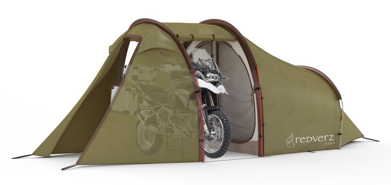 Šotor z ”garažo” za motocikel, Atacama Expedition Motorcycle, ki so ga pripravili pri Rederzu poleg motocikla daje prenočišče še trem odraslim osebam, krasi pa ga tudi predprostor, kamor lahko shranimo opremo (od čelade, čevljev, orodja, do vse ostalega). Ima tudi mrežo proti komarjem, veliko žepkov in možnosti za obešanje stvari. Če se kdaj na kampiranje odpravite brez motocikla, pa lahko šotor sestavite tudi brez posebnega prostora zanj.