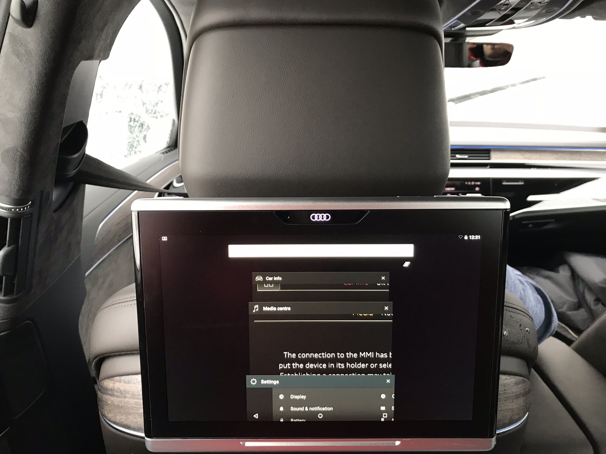 Notranjost novega Audija A8 se je pomaknila še en korak proti digitalizaciji. Poleg osrednjega digitalnega zaslona ima voznik na voljo še dva zaslona na osrednji armaturni plošči v velikosti 10,1 in 8,6 palca. Prek njih upravljamo navigacijo, klimatsko napravo in druge funkcije avtomobila. Navigacijo podpira najnovejši grafični procesor NVIDIA, pametni radio pa samodejno izbira med internetnim, DAB, FM ali AM radiem, glede na jakost in kakovost signala. Najbolj luksuzno mesto v Audiju A8 je seveda na desni strani zadaj. Tam ima tisti, ki se pusti voziti, najboljše pogoje za delo ali počitek. Prek prenosne tablice v velikosti 5,7 palca so mu na volje vse bistvene funkcija za njegovo boljše počutje. Lahko si nastavlja klimatsko napravo, ozvočenje, zabavne vsebine, pregleduje pot, hitrost in še kaj.