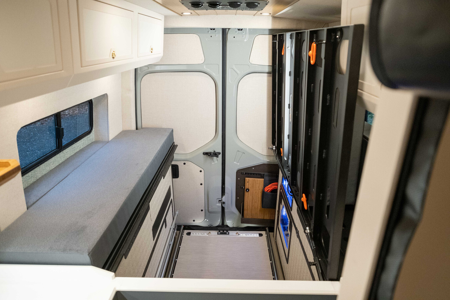 Kontrolna plošča vozila in sistem za nadzor omogočata enostavno upravljanje vseh funkcij vozila, od ogrevanja in hlajenja do spremljanja stanja baterije in vodnih rezervoarjev. Z dodanimi funkcijami, kot so vgrajene rezalne deske in skriti prostori za shranjevanje, BAM Van dokazuje, da je mogoče v kompaktnem prostoru združiti domišljijo, inovacije in praktičnost.