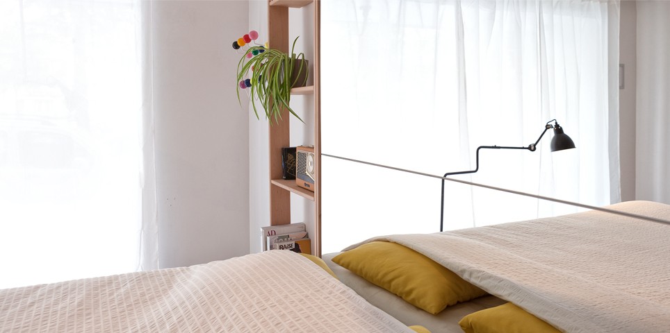 BedUp znamke Décadrage je dvižna postelja premična po višini (ne gre za dvižno posteljo v omari kot smo vajeni), ki se pospravi pod strop. Na voljo so tri različice in sicer elegantna BedUp Cocoon, minimalistična BedUp Vision in ”študentska” BedUp Campus, ki vse na kreativen način karseda maksimirajo majhen prostor.