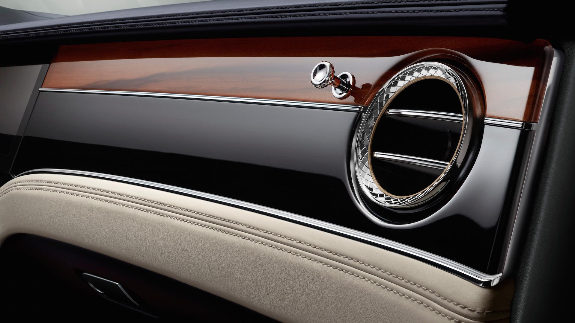 V notranjosti se prepletata moderna tehnologija in tradicija, ki si ju nekatere Bentleyjeve stranke še vedno želijo. Na osrednji konzoli imamo na voljo tri analogne kazalnike, ki se s pritiskom na gumb v stilu Jamesa Bonda zavrtijo, namesto njih pa tako občudujemo 12,3-palčni zaslon na dotik. Av nasprotju z Bondovim avtomobilom ima Bentley že vse pripravljeno tudi za Apple CarPlay in druge pametne telefone. Možnosti, med katerimi lahko izbirajo stranke, so skoraj neomejene. 15 različnih vrst preprog, 8 vrst furnirja za notranjost in še 4 dvojno zasnovani furnirni vložki. Že redna ponudba ponuja kar 17 zunanjih barv, če pa upoštevamo vse dodatne odtenke, je teh kar 70. In če k temu dodamo še serijska 21-palčna platišča oziroma 22-palčna po naročilu, dobimo resnično impresivno zunanjost.