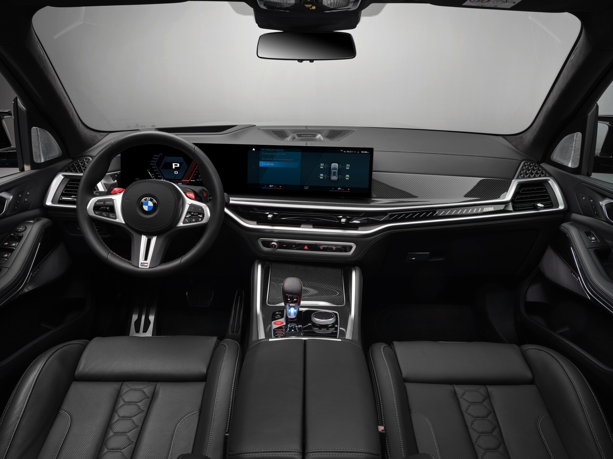 V notranjosti imata modela X5 M Competition in X6 M Competition nov ukrivljen zaslon BMW, ki združuje 12,3-palčni informacijski zaslon in 14,9-palčni nadzorni zaslon v enem okvirju. Kabina je standardno opremljena z oblogami iz ogljikovih vlaken, kupci pa lahko izbirajo tudi med možnostmi, kot sta Fineline Black ali Silver Ash Root Open Pore les.