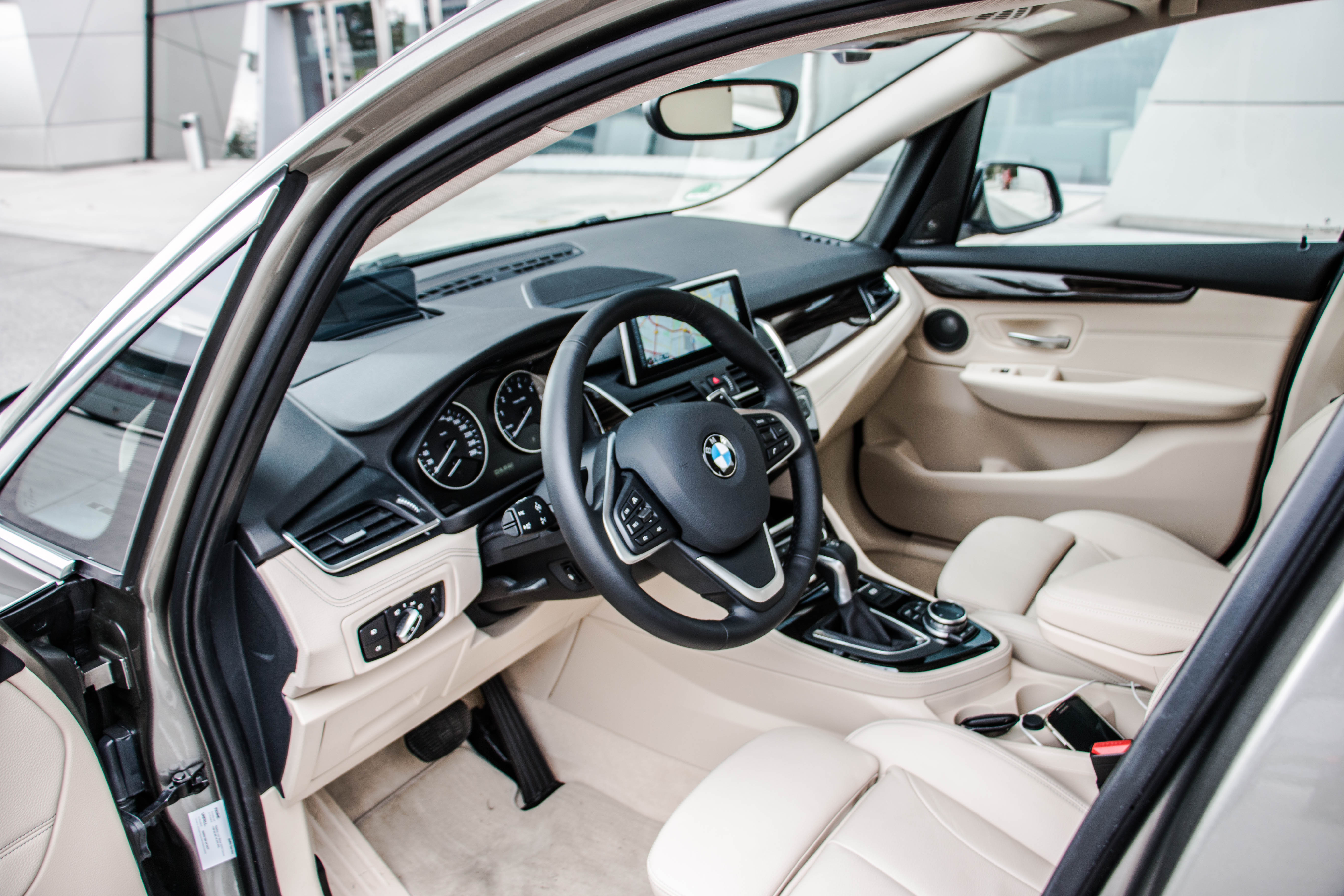 Active tourer navduši z detajli v notranjosti. Tako je popolnoma nova zasnova armaturne plošče, oziroma njenega sredinskega dela, ki je oblikovno drugačna in sveža. Navdušuje predvsem kakovost izdelave, ki v nobenem pogledu ne zaostaja za najvišjimi modelnimi številkami te znamke in jih s svojim svežim šarmom na trenutke celo prekaša. Kljub znanim elementom v notranjosti, skupnim vsem modelom BMW, se zdi, da bodo prav tu prepričevali kupce, da so boljši od konkurence. V ta segment namreč prinaša active tourer visoko raven premium občutkov.