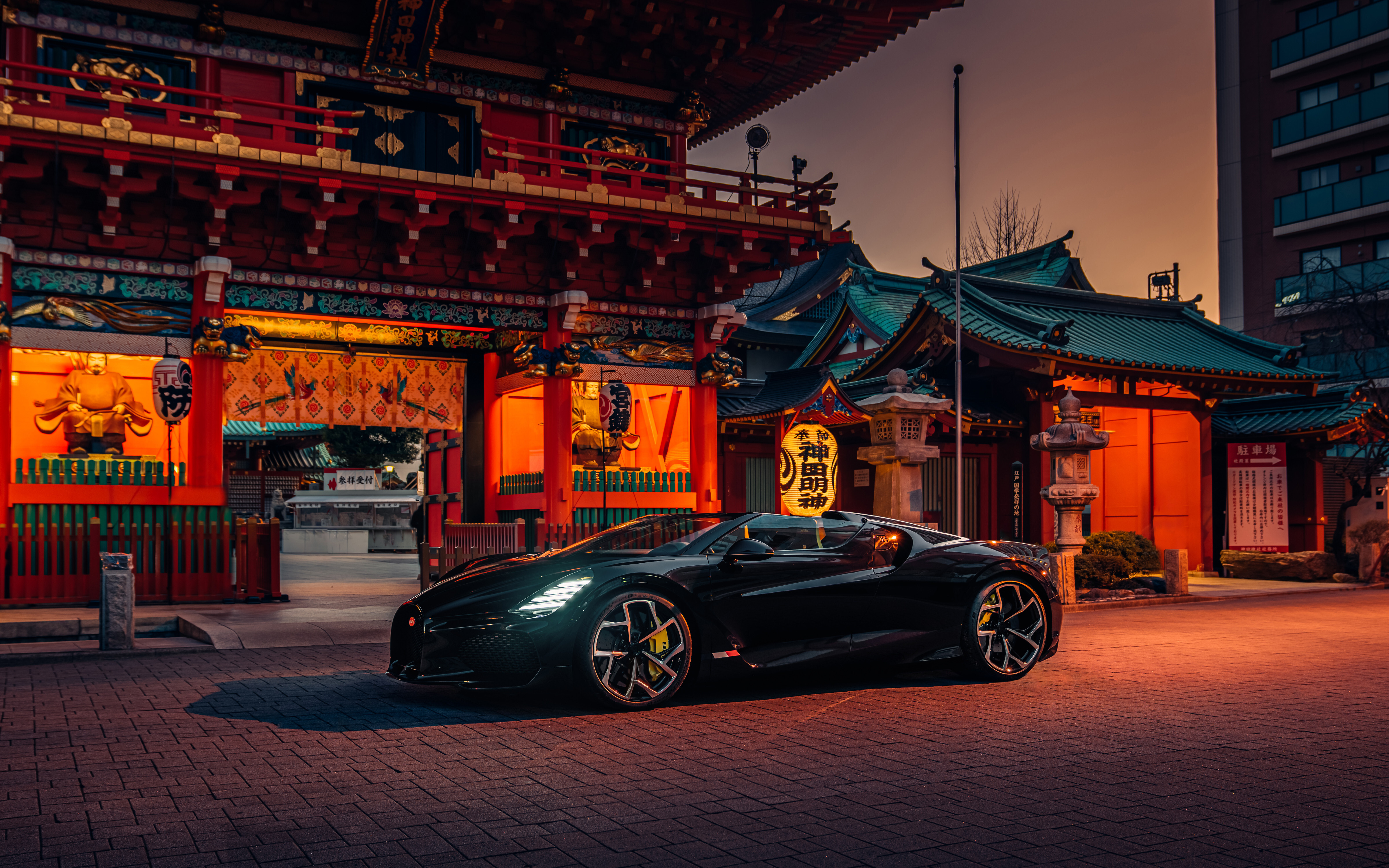 Slike, ki jih je Bugatti posredoval v spomin na obisk, so bile milo rečeno osupljive. Črni Bugatti W16 Mistral je predstavljal oster kontrast z živimi odtenki Tokia in poudarjal vse o roadsterju s 1.578 konjskimi močmi (1.177 kilovati) quad-turbo.