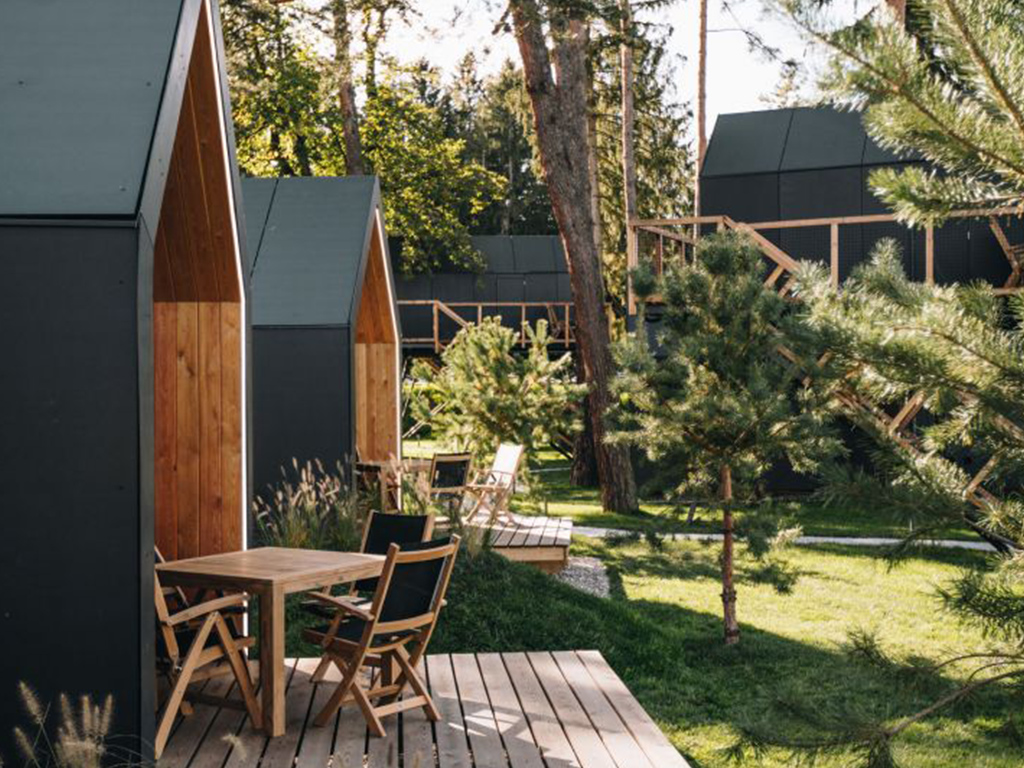 Na idilični lokaciji, nedaleč stran od priljubljenega blejskega jezera, se nahaja osem udobnih glamping hišk. Najdete jih v zavetju smrekovega gozda, ob nabrežju reke Save, ki skrbi za hlad tudi v poletnih dneh. So plod dela slovenskih obrtnikov in slovenskega lesa, zaradi svoje lege pa gostom zagotavljajo popolno zasebnost, nedaleč stran od turističnega bisera. Opremljene so tudi z zasebno zunanjo kadjo in savno, razvajate pa se lahko s slovensko košarico, polno slovenskih dobrot.