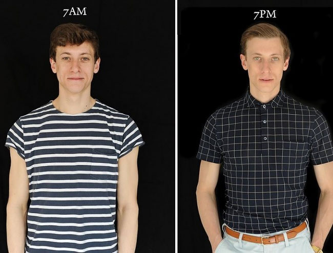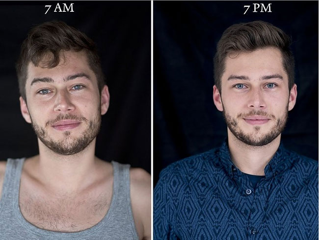 Zjutraj in zvečer smo ljudje povsem druga oseba, vsaj kar se tiče videza. Ta tema je pritegnila belgijsko fotografinjo Barbaro Iweins, ki je na primeru portretov (serija 7AM-7PM) prikazala neverjetno stilsko preobrazbo čez dan, ki pa se je niti ne zavedamo. Svoje portretirance je ujela ob sedmih zjutraj in sedmih zvečer.